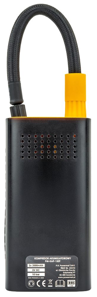 Aku kompresor do auta, 80W | PM-KAP-150T je prenosné zariadenie na rýchle nafúkanie pneumatík, lôpt či nafukovačiek bez potreby externého napájania. Zariadenie ponúka výkon 80 W a maximálny tlak 10 barov / 150 PSI, čo zaručuje rýchle a efektívne nafúknutie rôznych typov pneumatík a príslušenstva. Je vybavený batériou s kapacitou 4000 mAh (2×2000 mAh), ktorá umožňuje mobilnú prevádzku bez potreby neustáleho pripojenia k napájaniu.
