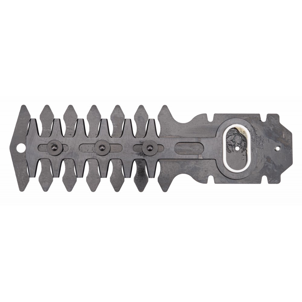 Sada obsahuje 83 mm širokú čepeľ na orezávanie trávy a 120 mm dlhú čepeľ na vyžínanie kríkov s rozstupom 6 mm medzi zubami. Výmena čepele sa vykonáva pomocou systému bez použitia nástrojov, ktorý vám umožní rýchlu zmenu z nožníc na trávu na nožnice na kríky. Použitie dvoch nožov umožňuje presné tvarovanie okrajov trávnika a malých kríkov.