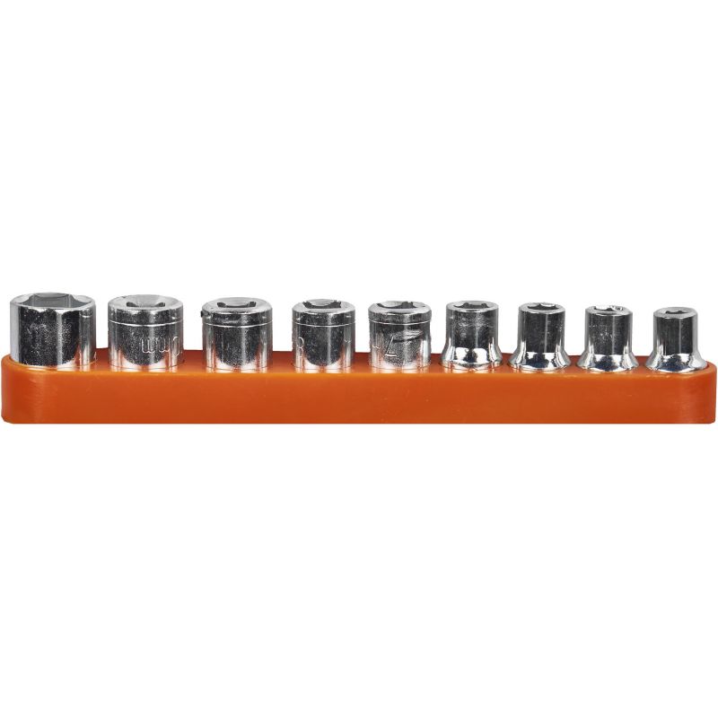 - Násadky (9 ks): 5 mm, 6 mm, 7 mm, 8 mm, 9 mm, 10 mm, 11 mm, 12 mm, 13 mm