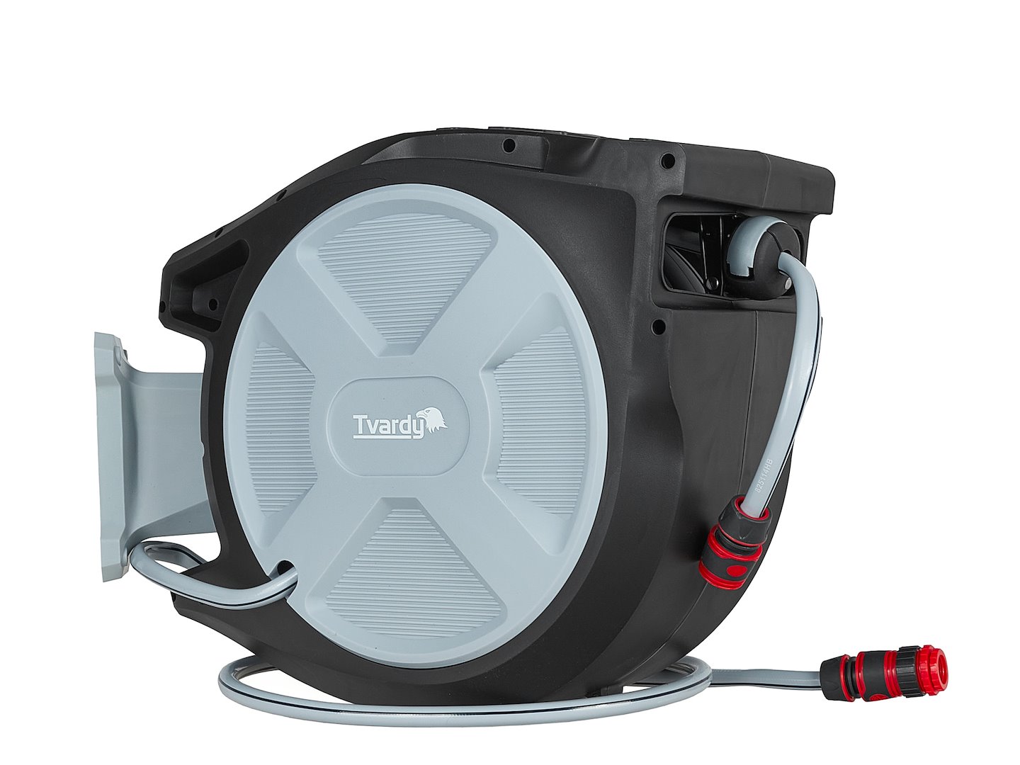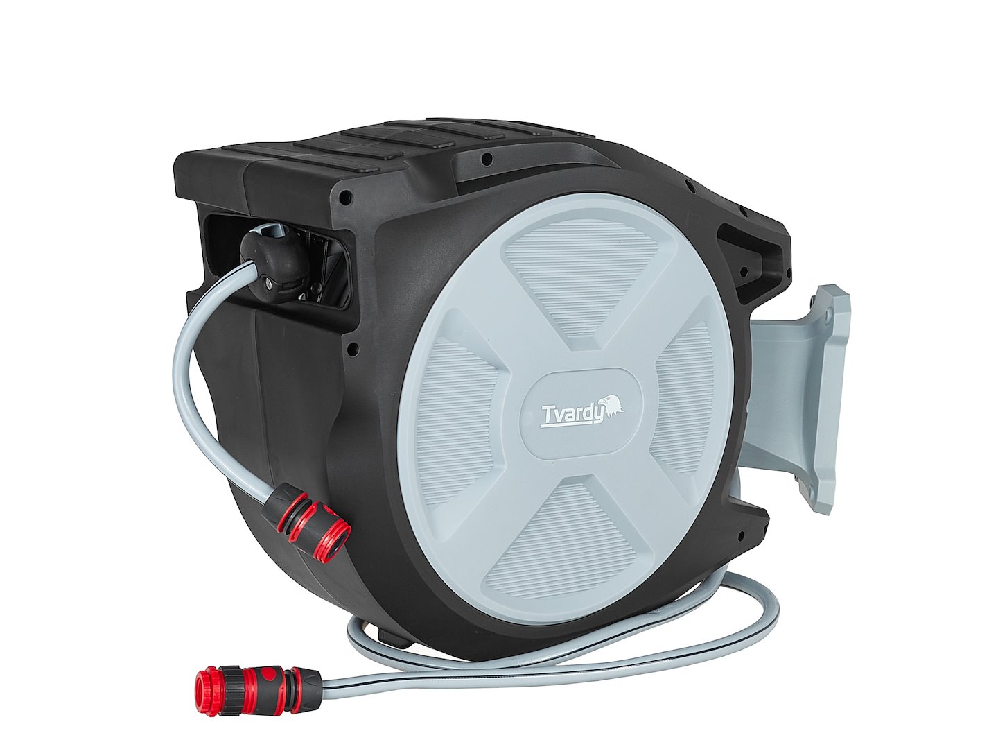 Automatický hadicový navijak BRASS-LINE, 1/2″, 35m | Tvardy je praktickým riešením pre každú záhradu, pozemok alebo domáce dielne. Vďaka mechanizmu automatického navíjania zostáva hadica vždy uprataná a pripravená na použitie. Pevné puzdro a pohodlný systém montáže na stenu robia túto súpravu odolnou, funkčnou a veľmi pohodlnou pri každodennom používaní. Vstavaný, odolný mechanizmus automatického navíjania umožňuje rýchlo a pohodlne schovať hadicu po ukončení práce.