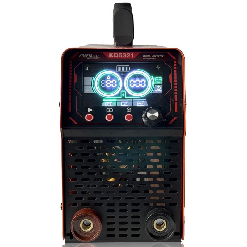 Model KD5321 podporuje batérie s kapacitou od 50 Ah do 800 Ah. Vďaka vysokému štartovaciemu prúdu 600 A účinne podporuje štartovanie vozidiel v náročných podmienkach. Zariadenie je vybavené rozsiahlym bezpečnostným systémom, ktorý chráni pred prepólovaním, preťažením, prehriatím, skratom a prepätím. Ventilátor s reguláciou teploty zabezpečuje dostatočné chladenie počas intenzívnej prevádzky.