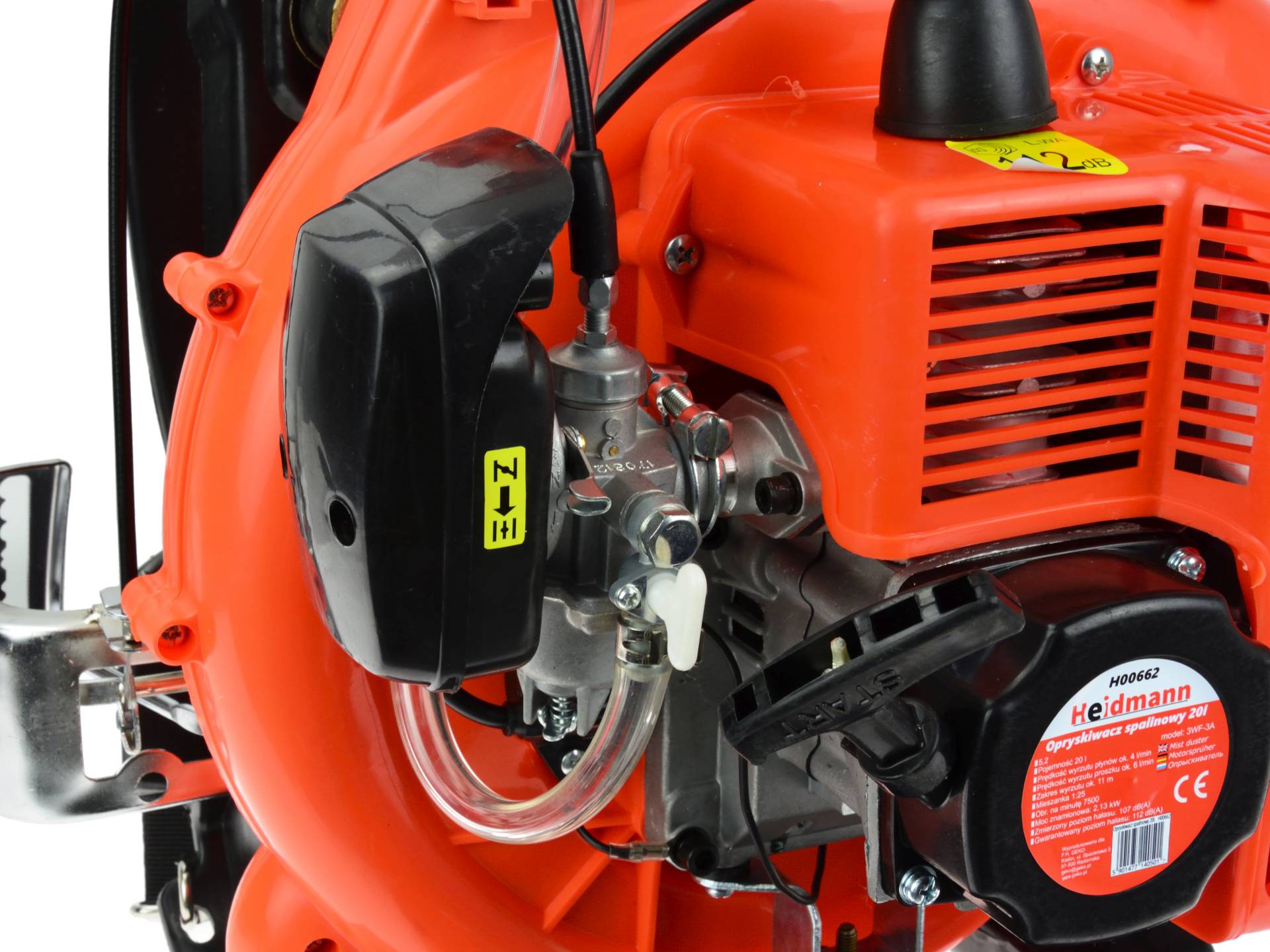Benzínový postrekovač, 20L | Heidmann s veľkou nádržou na efektívnu aplikáciu kvapalín a granulátov v poľnohospodárstve, záhrade aj lese. Jeho spoľahlivý, tichý, výkonný a efektívny motor je ideálny na postrek alebo rozmetávanie hnojív. Súčiastky sú kvalitne spracované, vďaka čomu motor nespôsobuje nadmerné vibrácie. Kapacita postrekovania je približne 4 litre kvapaliny za minútu prevádzky. Celé zariadenie je namontované na mäkkých gumových podložkách, takže takmer neucítite žiadne vibrácie.