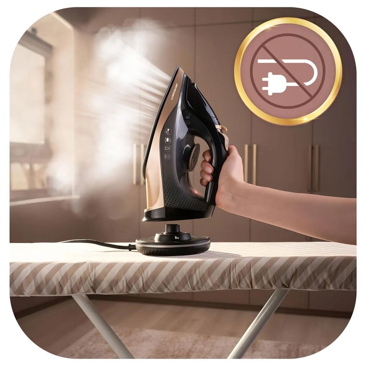 - Bezdrôtová a klasická 2 v 1 – už žiadne obmedzenia dĺžky kábla! Ak chcete, môžete tiež trvalo uzamknúť základňu a pracovať s ňou ako s klasickou žehličkou