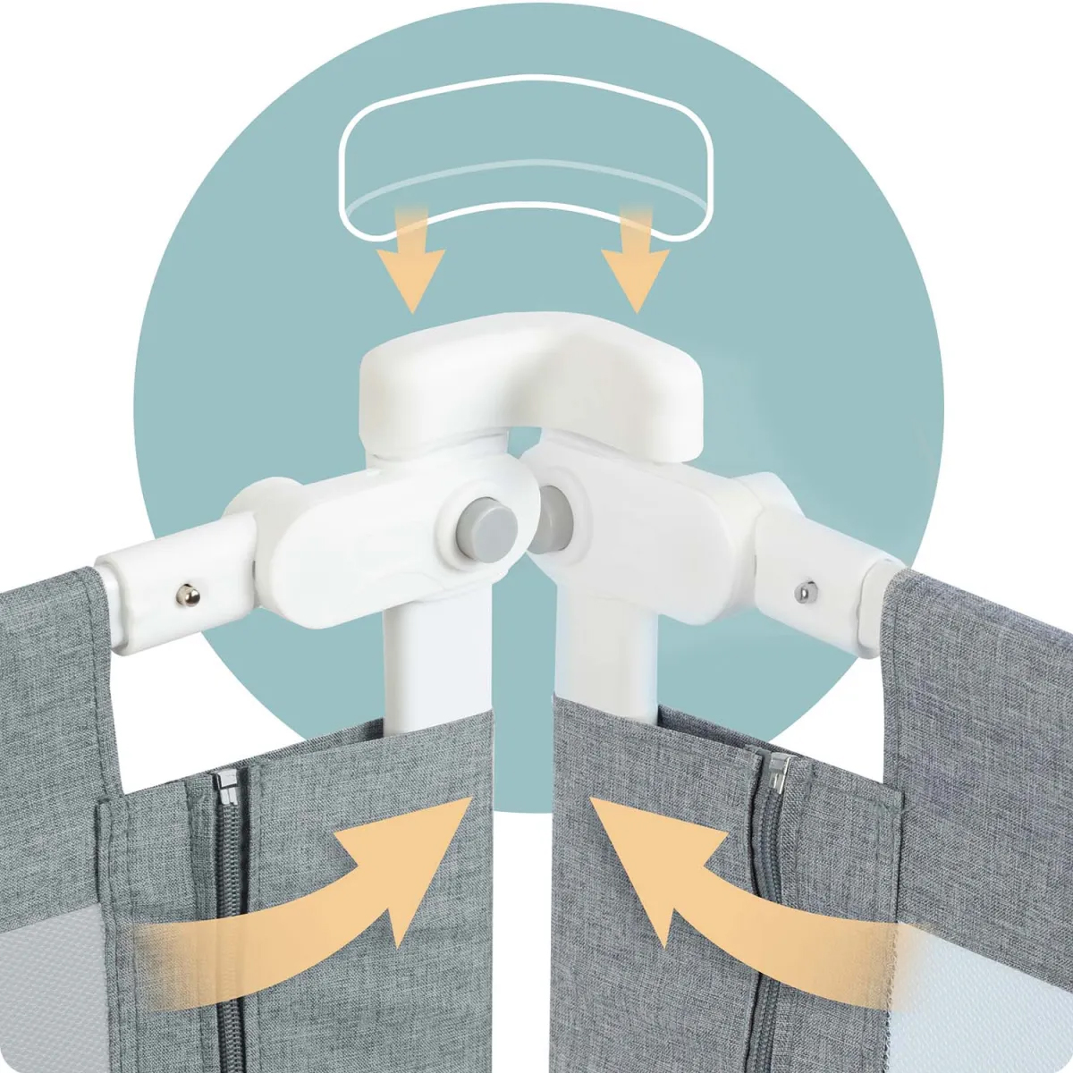 Mäkké a pohodlné látkové čalúnenie poskytuje deťom príjemný pocit pri kontakte a zároveň jednoduché čistenie povrchu uľahčuje starostlivosť. Zábrana sa hodí pre detské postele bez vstavaných ochranných prvkov a pomáha rodičom zabezpečiť pokojnejší spánok pre ich ratolesti.