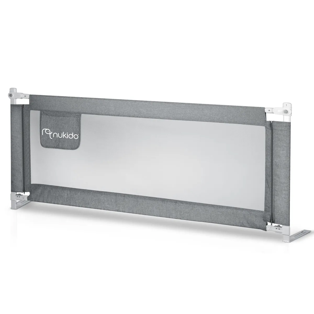 Bezpečnostná zábrana na posteľ NK-227, 200cm, sivá | Nukido účinne chráni pred pádmi, poskytuje vášmu dieťaťu slobodu a vám istotu, že je v bezpečí. Konštrukcia kladie dôraz na stabilitu a jednoduchú montáž – zábrana sa pevne upevňuje k rámu postele bez potreby zložitých nástrojov a odolné materiály zabezpečujú dlhodobé používanie.