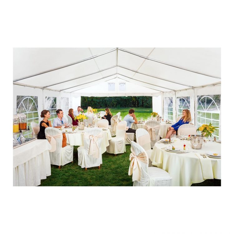 Párty stan je vybavený ôsmimi veľkými transparentnými bočnými oknami, ktorá cez deň privádzajú do stanu optimálne a prirodzené svetlo. Dodatočné osvetlenie interiéru teda nie je potreba. Oblúkovité okná okrem toho prepožičiavajú vášmu party stanu veľmi estetický vzhľad a umožňujú každému hosťovi atraktívny výhľad.
