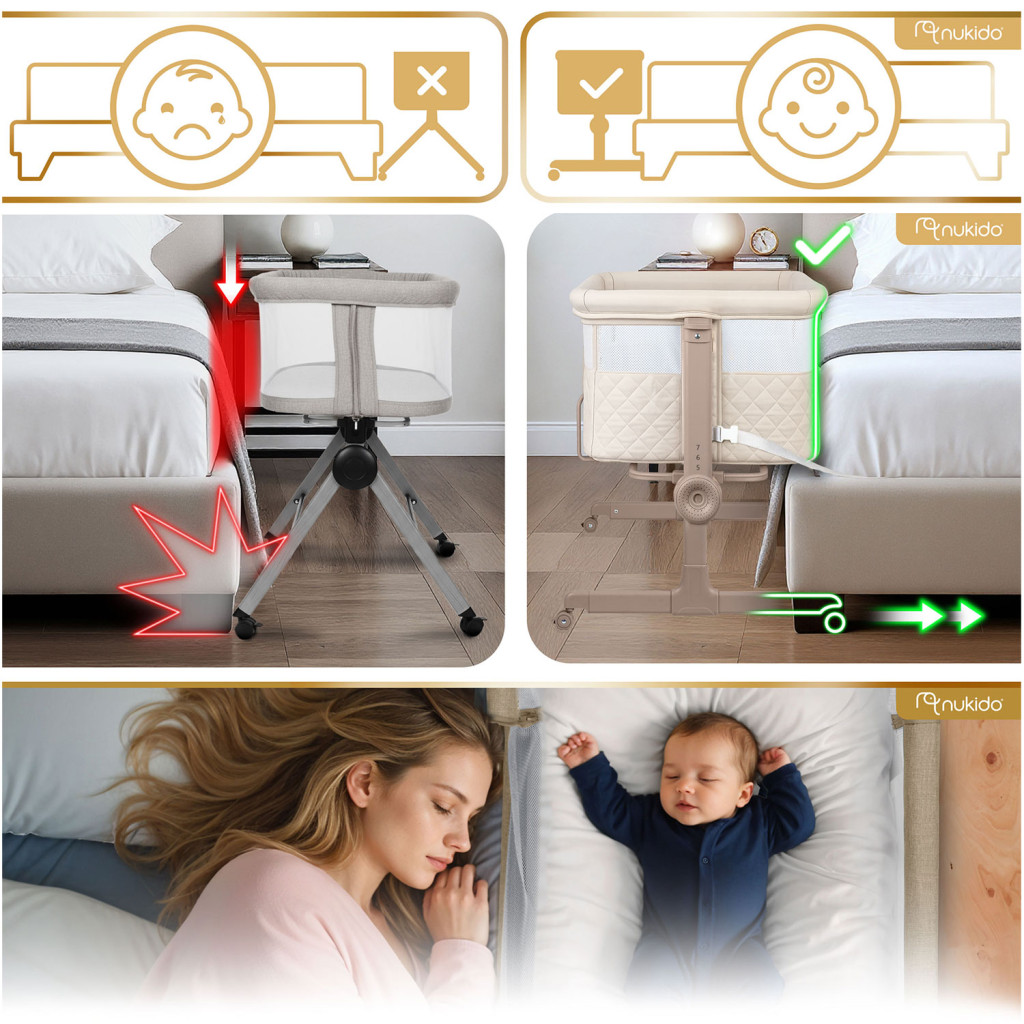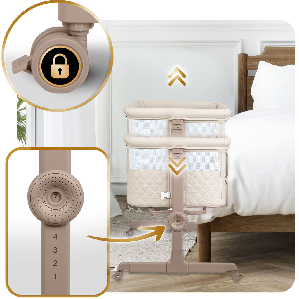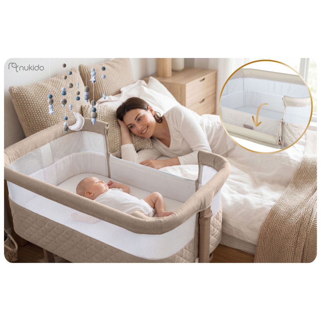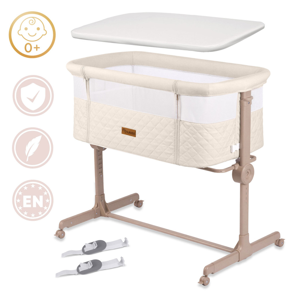 Detská cestovná postieľka NK-243, skladacia, krémová | Nukido s výsuvnou prístavnou časťou ponúka praktické riešenie pre rodičov i bábätká na cestách. Vyrobili ju tak, aby bola ľahká a skladacia, čo uľahčuje manipuláciu a prenášanie pri cestách. Výšku možno nastaviť v 7 krokoch, nezávisle z každej strany, čo pomáha prispôsobiť postieľku výške vášho matraca.