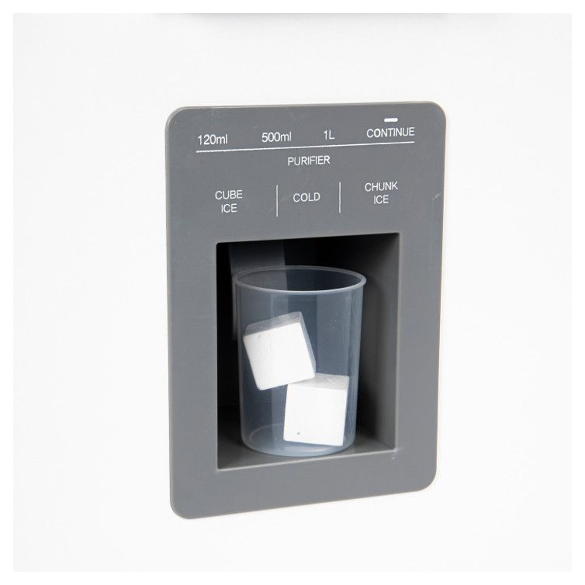 Na dverách chladničky je dávkovač vody a výrobník ľadu. Kuchynská súprava obsahuje hrnček a dva drevené kocky, ktoré dokonale imitujú kocky ľadu. Stačí umiestniť pohár do okienka výrobníka ľadu a jemne ním zatlačiť na dávkovač ľadu a „kocka ľadu“ spadne do pohára.
