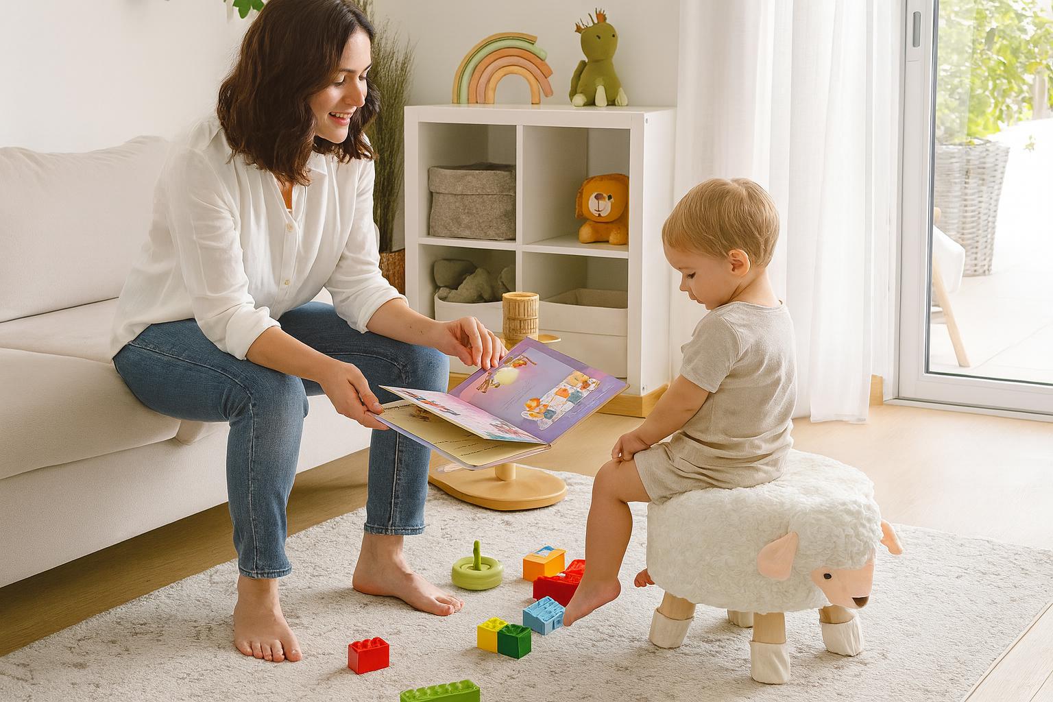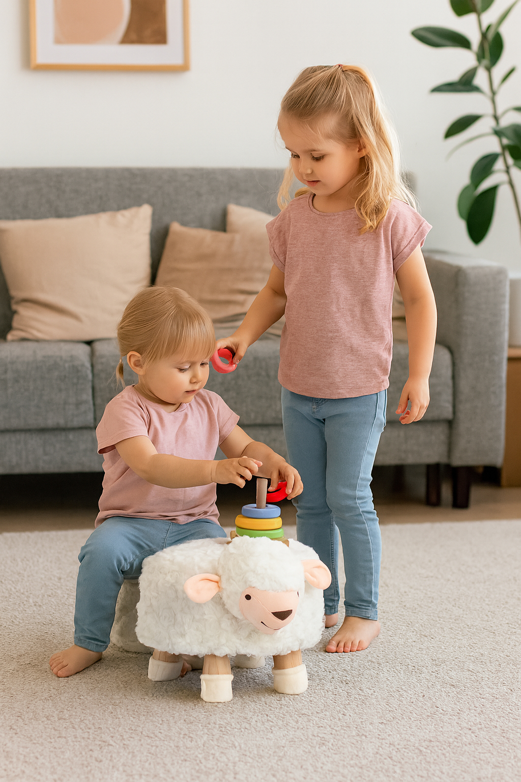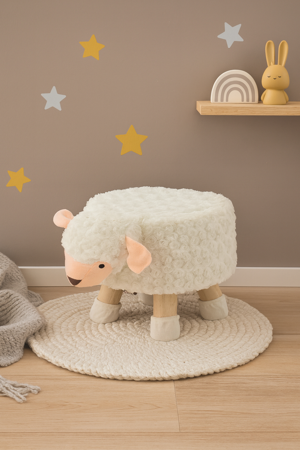 Detská taburetka, 28x25cm | ovečka je originálny doplnok, ktorý ponúka praktické miesto na sedenie či odpočinok, ideálny do detskej izby. Taburetka je vyrobená z mäkkých materiálov, ktoré umožňujú pohodlné sedenie, a vnútorná výplň poskytuje stabilnú oporu. Vďaka kompaktným rozmerom sa pohodlne zmestí aj do menších priestorov, no zároveň dodá miestnosti hravý a originálny nádych. Dizajn inšpirovaný žirafou osloví deti i dospelých.