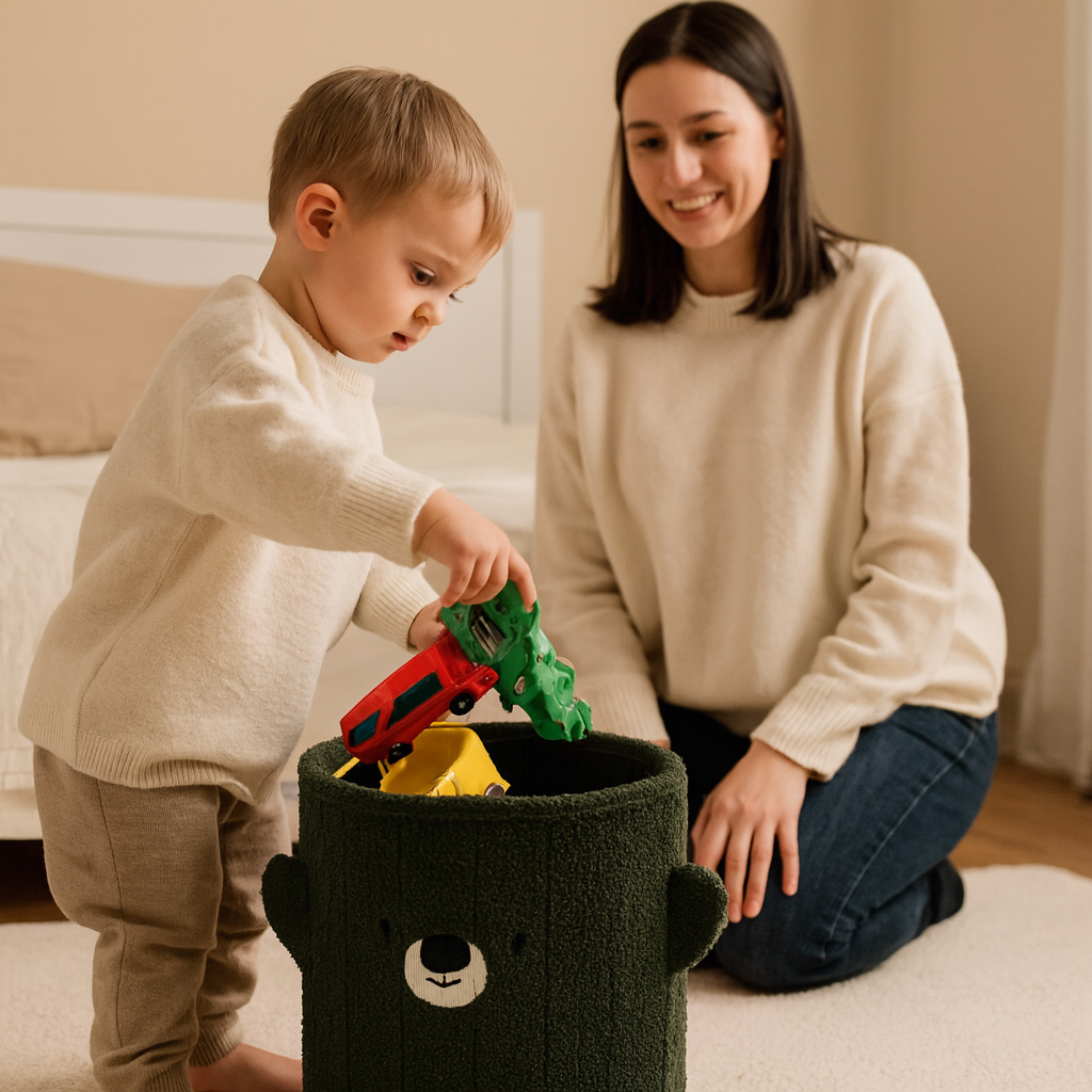 Detská taburetka s úložným priestorom, 28x28x34cm | zelená kombinuje funkciu pohodlného sedadla a úložného priestoru, vďaka čomu sa hodí do každej izbičky. Vďaka kompaktným rozmerom 28 × 28 × 34 cm sa hodí do obývačky, spálne, predsiene či detskej izby, kde nezaberá veľa miesta.
