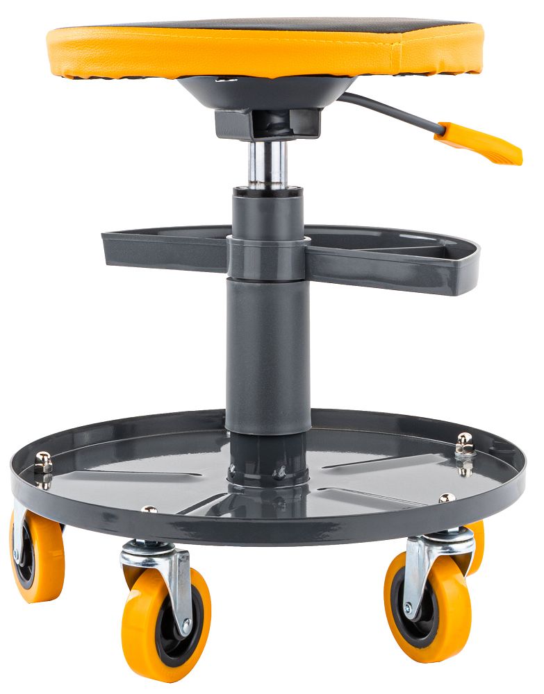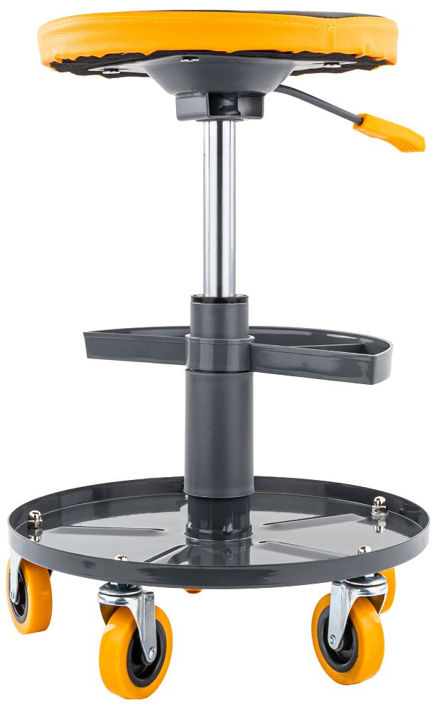 Sedadlo má rozmery 35,5 × 40 × 40 cm, vďaka čomu sa ľahko umiestni na pracovisko a pohodlne sa skladuje aj v menšej garáži. Robustnú konštrukciu stoličky výrobca navrhol na náročnú prácu a zabezpečuje nosnosť až 150 kg. To zaručuje stabilitu a bezpečné používanie v domácich garážach aj profesionálnych dielňach.