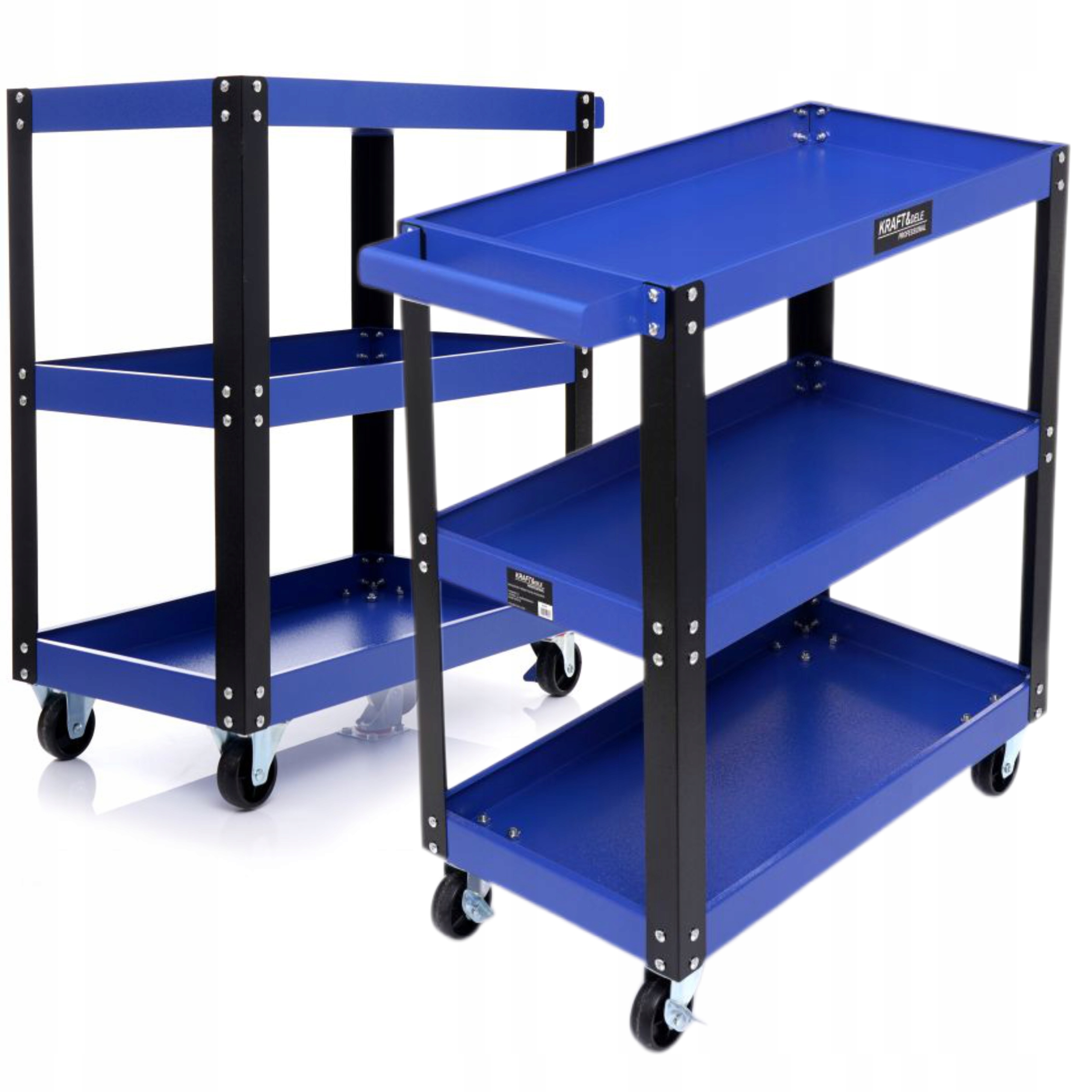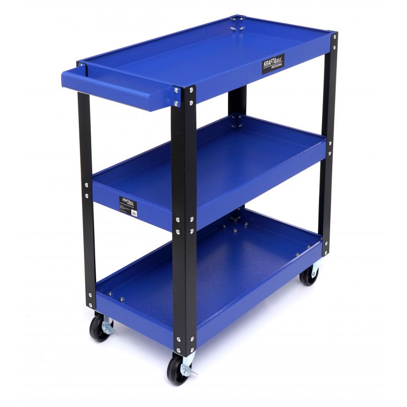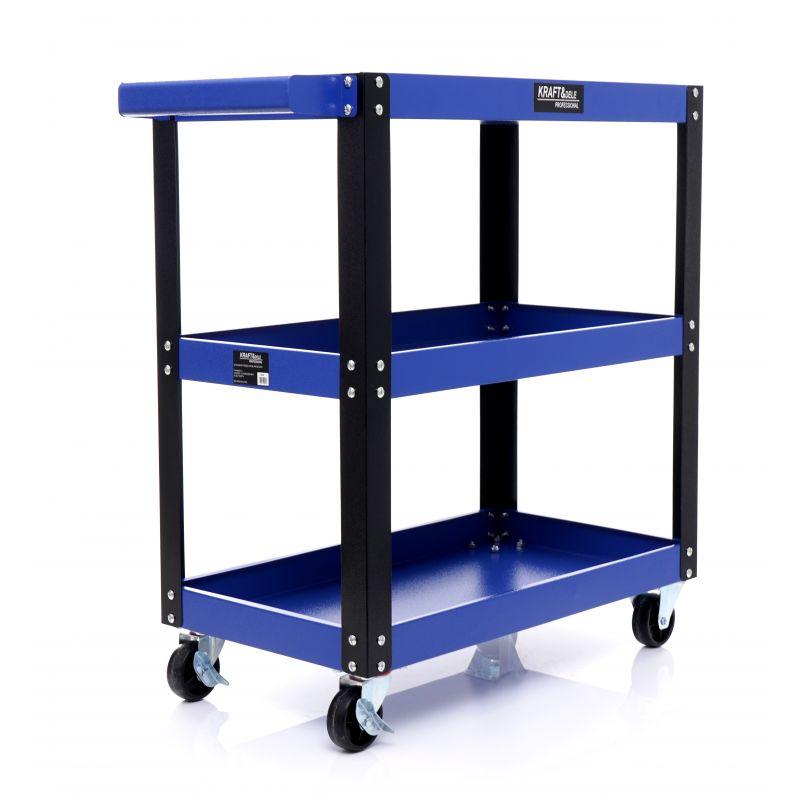Dielenský vozík, 3 police | KD1066 je určený na organizované uskladnenie a jednoduchú manipuláciu s vybavením a náradím v dielni, garáži alebo servise. Vozík ponúka tri police s hĺbkou 4,5 cm a slúži na ukladanie náradia aj prepravu menších predmetov. Hodí sa do dielní, servisných centier aj domácich garáží a vďaka pevnej oceľovej konštrukcii a štyrom kolieskam, z ktorých dve sú otočné, ponúka jednoduchú manipuláciu a vysokú odolnosť. Väčšie zadné a menšie predné kolieska uľahčujú manévrovanie aj s ťažkým nákladom.