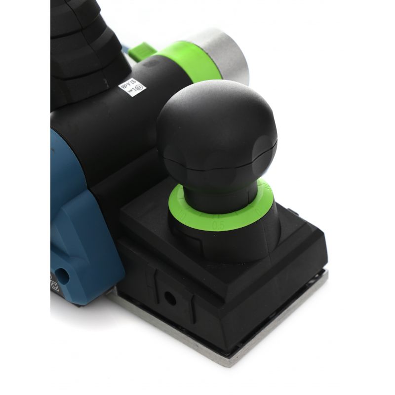 Hoblík je vybavený inovatívnym bubnom s 3 vymeniteľnými nožmi. Otočením veľkého otočného prepínača zvýšite alebo znížite hĺbku rezu hoblíka. Z bezpečnostných dôvodov sme použili aj automatický bezpečnostný spínač, ktorý chráni zariadenie pred deťmi a náhodným spustením. Hoblík je prispôsobený aj na odsávanie prachu!