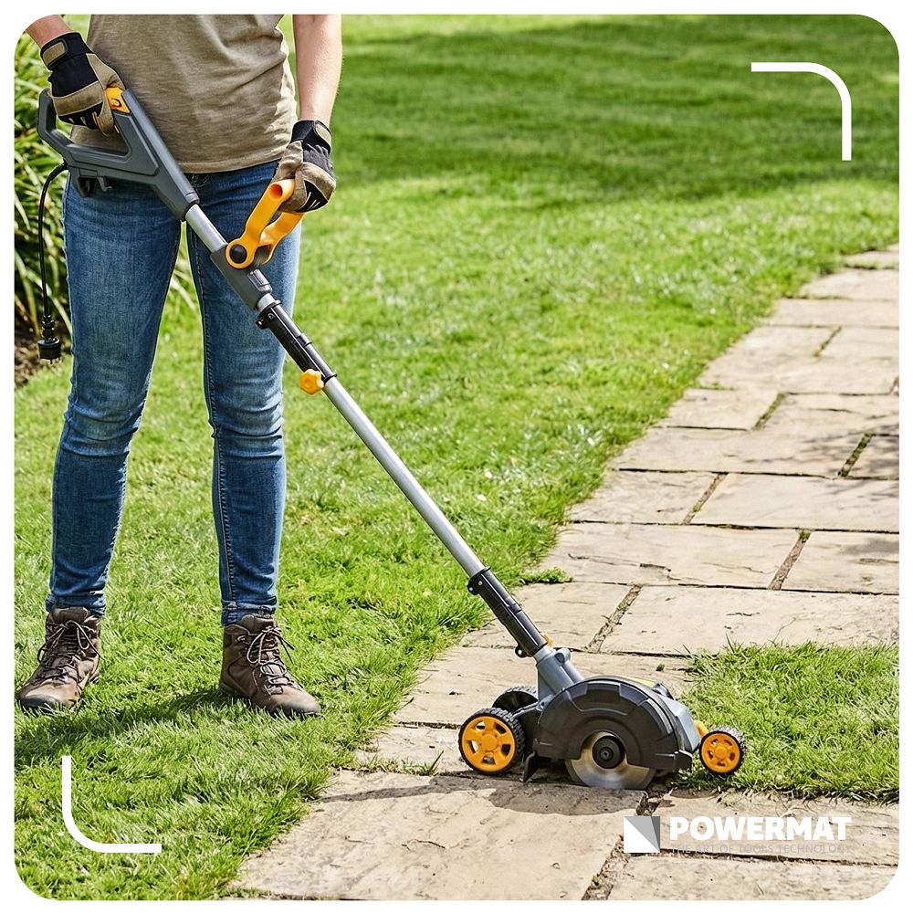 Elektrický orezávač trávnika, 1500W | PM-EKT-1500T vám umožňuje presne odstraňovať burinu, mach a trávu zo štrbín dlažobných kociek a okrajov trávnika. Vďaka výkonu 1500 W a pracovnej šírke 200 mm pracujete rýchlejšie a presnejšie, čím dosiahnete rovné okraje a estetické vyhotovenie povrchu bez použitia chemikálií.