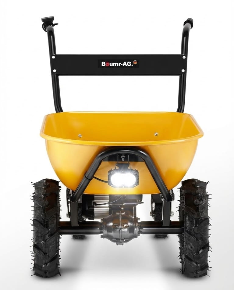 Elektrický vyklápací fúrik BPR-800E, 260kg, LED | BAUMR-AG uľahčuje prepravu materiálu pri práci v záhrade, na stavbe aj v okolí domu. Je navrhnutý s ohľadom na vašu bezpečnosť a komfort pri práci. Vďaka intuitívnym ovládacím prvkom ovládaným jednou rukou ľahko prepínate medzi režimom jazdy dopredu a dozadu, a elektronické systémy EBS/ABS zabezpečujú presnú kontrolu rýchlosti a brzdnej sily.