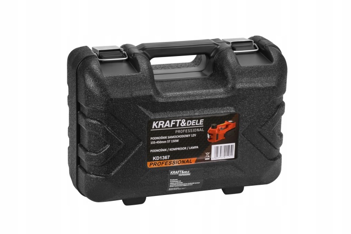 Elektrický zdvihák na autá, 155-450mm | KD1367 umožňuje rýchle a jednoduché zdvihnutie vozidla pri núdzových situáciách aj bežných servisných prácach. Výkonný motor umožňuje rýchle zdvihnutie auta bez fyzickej námahy, pričom ovládanie prebieha pohodlne pomocou tlačidla. Zariadenie kombinuje viac funkcií v jednom – okrem zdviháka obsahuje aj integrovaný kompresor na hustenie pneumatík a LED osvetlenie na prácu v horších svetelných podmienkach.