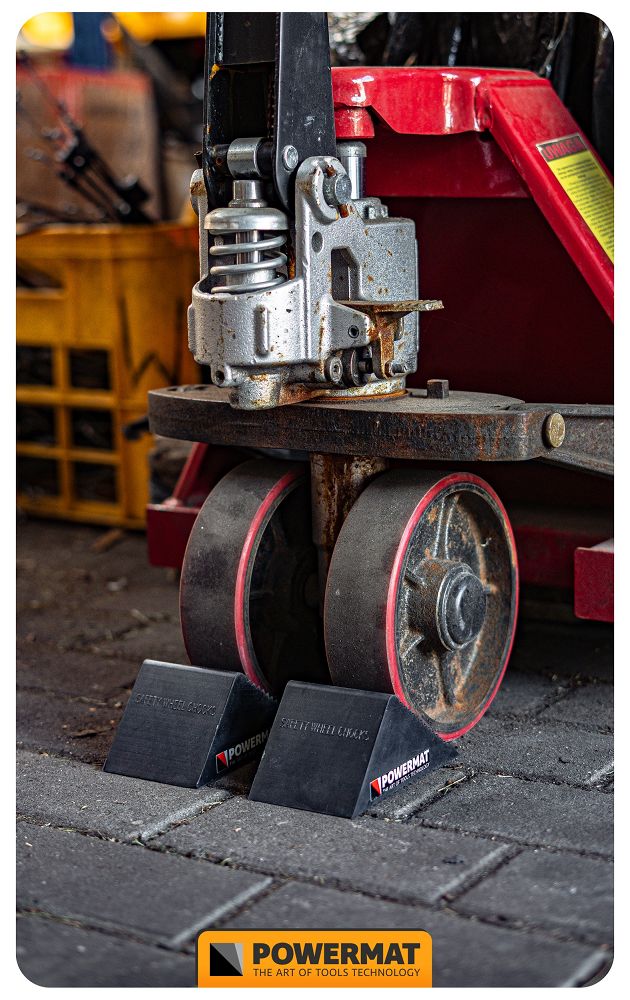 Gumové kliny pod kolesá, 2ks | PM-GKPK-133T zabezpečujú účinné zablokovanie vozidla, čím zvyšujú bezpečnosť pri servisných prácach. Vďaka svojej vynikajúcej priľnavosti zabraňuje klin nekontrolovanému “odkotúľaniu” vozidla. Klíny a špeciálne navrhnuté zuby na spodnej strane zlepšujú priľnavosť k povrchu a pneumatikám, čím zabezpečujú efektívne znehybnenie vozidla.