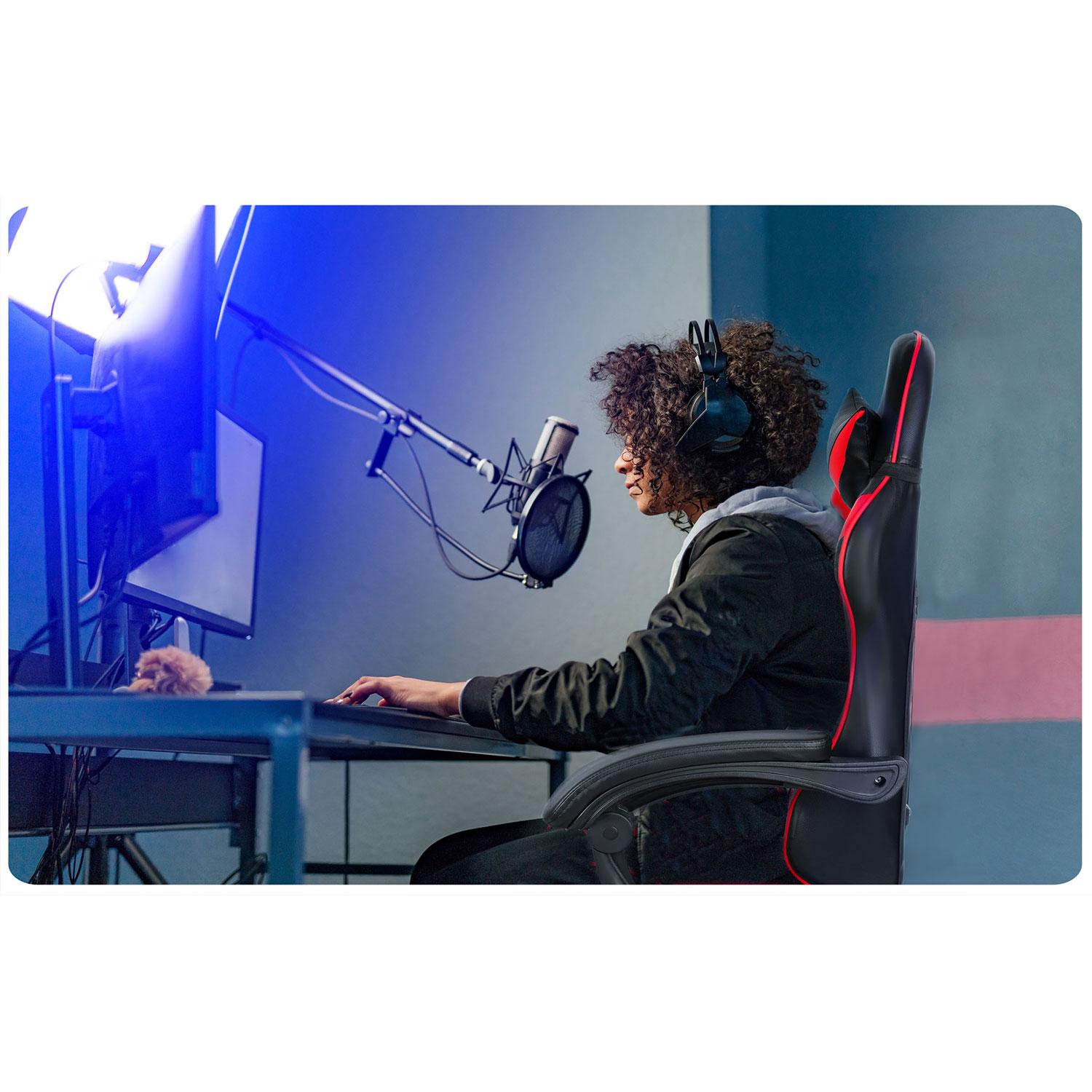Herné kreslo Draknor, čierno-červené | Sofotel ponúka ergonomické sedenie, nastaviteľné opierky pre maximálne pohodlie pri dlhom hraní alebo práci. Je to moderné herné kreslo navrhnuté pre náročných používateľov. Jeho dynamický dizajn s prešívanými detailmi pripomína sedadlá športových áut a okamžite pritiahne pozornosť v každom hernom alebo pracovnom priestore.