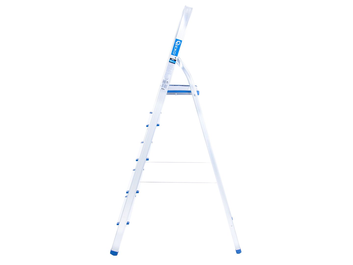 Hliníkový rebrík,150kg, 5-stupňový, skladací | GEKO je osvedčeným nástrojom pre každého, kto hľadá mobilné a bezpečné riešenie pre prácu vo výškach. S pracovnou výškou 3 metre vám umožňuje bezpečne pracovať na stropoch, odkvapoch, markízach a dokonca aj na nízkych strechách. S hmotnosťou iba 3,4 kg je rebrík mimoriadne ľahký a vďaka skladacej konštrukcii nezaberá veľa miesta na skladovanie.