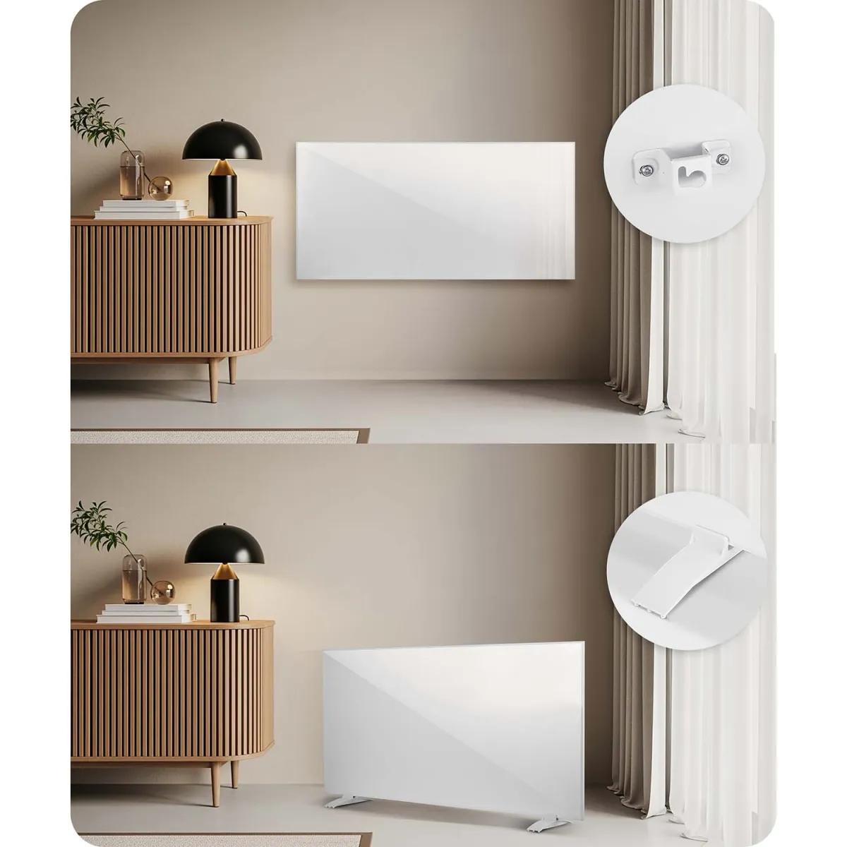 Je koncipovaný ako 3v1 – dá sa namontovať na stenu, na strop alebo postaviť samostatne pomocou priložených nôh, čím sa prispôsobí rôznym typom interiérov. Materiálové vrstvy zahŕňajú PET, PP, aluminium a oceľ. Panel má krytie IPX4, čo zaručuje odolnosť voči vode – vhodné aj pre miestnosti s vyššou vlhkosťou (napr. kúpeľne), samozrejme pri dodržaní bezpečnostných predpisov. Dĺžka napájacieho kábla je 1,5 m.