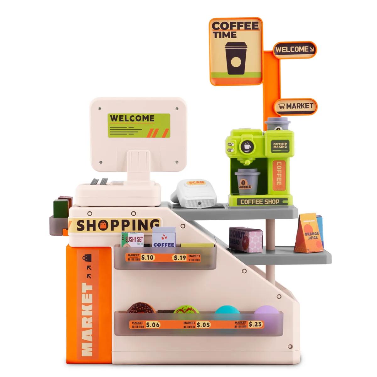 Súčasťou sady je aj kávovar, čítačka čiarových kódov, realistická pokladňa so skenerom, zásuvkou na mince a bankovky, mikrofónom a zvukovými aj svetelnými efektmi, ktoré umocňujú autentický zážitok z hry. Vďaka kvalitnému spracovaniu a bezpečným materiálom je pokladňa vhodná pre deti už od troch rokov. Hračka nielen zabaví, ale aj učí deti základom matematiky, komunikácie a spolupráce, čo z nej robí ideálny darček pre malých predajcov či obchodníkov.