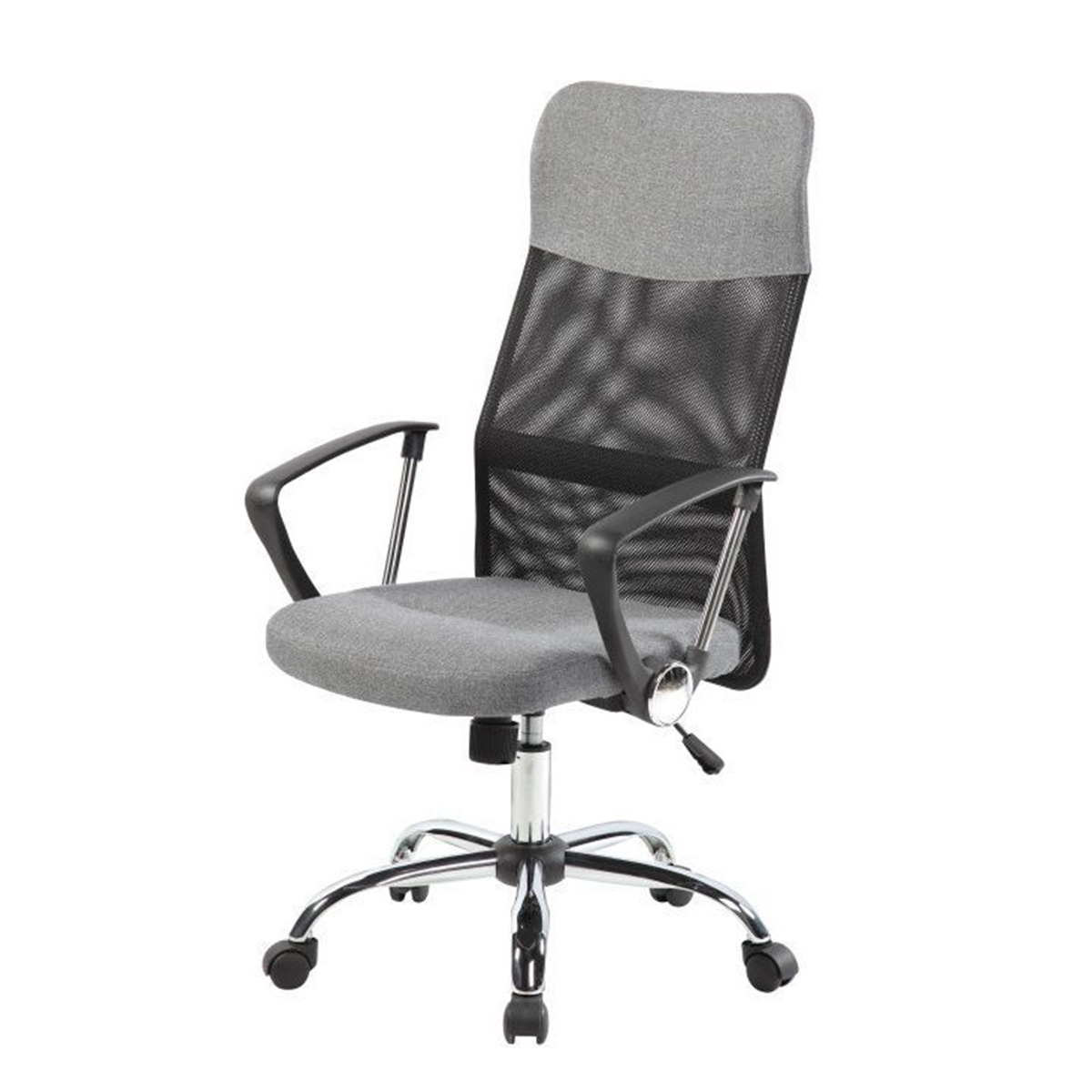 Kancelárska stolička – šedá | Lily má vysoko ergonomické operadlo so sieťkou, ktorá zaisťuje správnu polohu a vetranie počas práce. Opierka hlavy je vyrobená z ekologickej kože a sedadlo je vyrobené zo sieťoviny. Podrúčky sú vyrobené z pevného plastu. Chrómové prvky dodávajú kreslu elegantný štýl. Kancelárska stolička je vybavená plynovým výťahom a systémom „TILT“, ktorý umožňuje zablokovať vertikálnu polohu alebo odblokovať ľahké kývanie. Výška stoličky sa dá nastaviť do 10 cm. Namontované kolesá neškriabu povrch.
