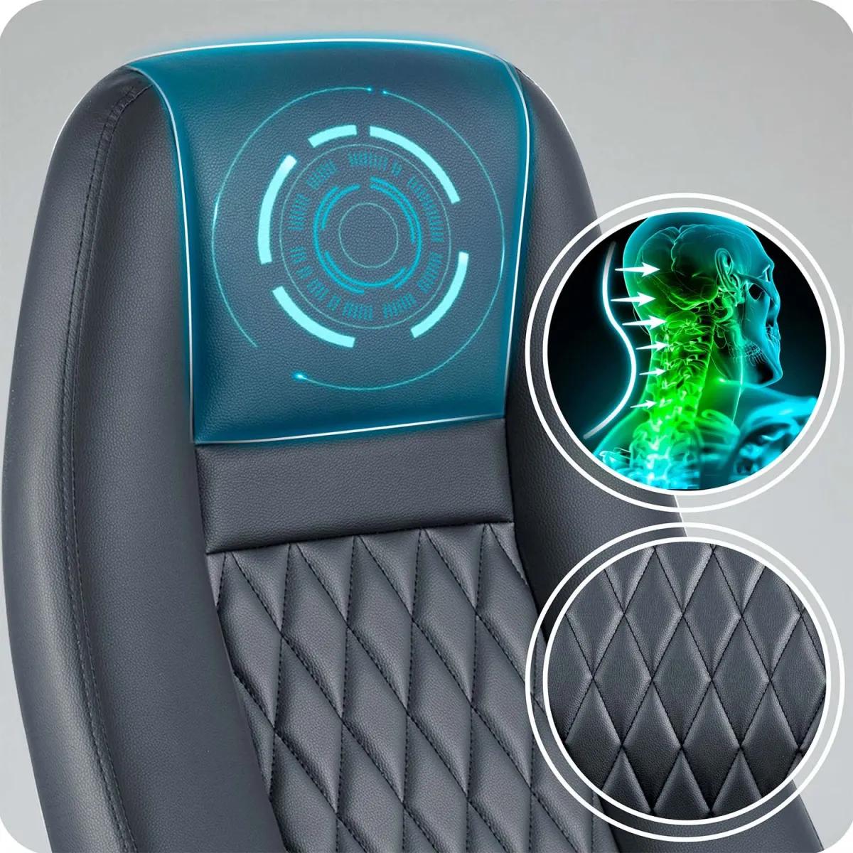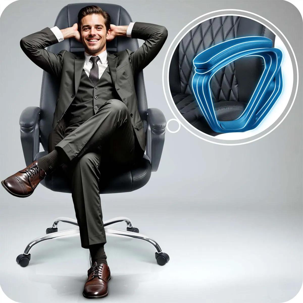 Stolička ponúka široký rozsah sklonu operadla, takže môžete kedykoľvek prejsť z pracovnej polohy do pohodlnej polohy na oddych. Kontúrovaná bedrová časť pomáha udržiavať ergonomickú a bezpečnú polohu tela. Kontúrovaná opierka hlavy rovnomerne rozloží tlak, uvoľní svaly a zabráni bolesti krku. Chrómový rám z vysoko kvalitnej ocele zaisťuje výnimočnú stabilitu a odolnosť a elegantná povrchová úprava je odolná voči poškriabaniu a korózii.