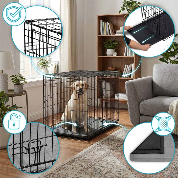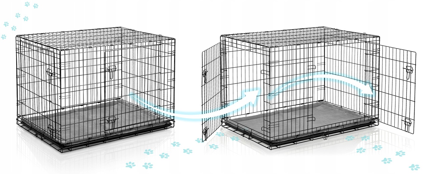 Vďaka kovovej konštrukcii s pevnými mrežami je odolná voči poškodzovaniu a zabezpečuje dobrú cirkuláciu vzduchu, čo zvyšuje pohodlie vášho psa. Klietka sa jednoducho otvára pomocou dverí s poistkou, čo uľahčuje manipuláciu a prístup k zvieraťu, a zároveň zaručuje jeho bezpečné držanie bez nežiaduceho úniku. Klietka má spoľahlivý mechanizmus rozkladania a skladania. Niekoľkými pohybmi sa zmení na plochý, ľahký a praktický kufor. Môžete ju ľahko prenášať, skladovať alebo vziať do auta.