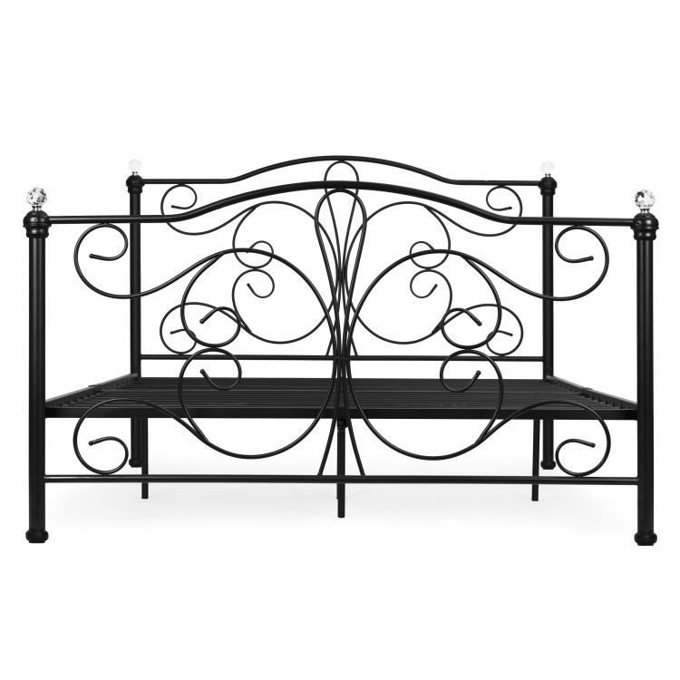 Kovová posteľ, 160x200cm, čierny rám | ModernHome je univerzálne riešenie, ktoré sa perfektne hodí do rôznych interiérov a dodáva im moderný nádych. Stabilná konštrukcia so vstavaným rámom zaručuje pohodlný spánok každý deň. Rám v romantickom štýle s dekoratívnymi detailmi v kombinácii s nadčasovou čiernou farbou umožňuje, aby sa posteľ ľahko hodila do klasických, romantických alebo moderných interiérov, čím zdôrazňuje estetiku a harmóniu interiéru.