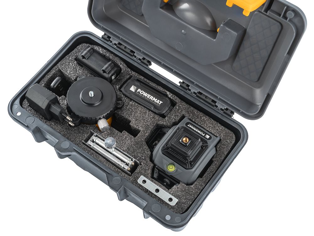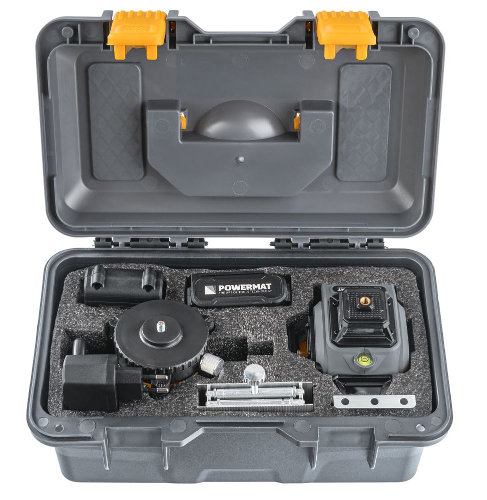 Krížový laser, 4D, 360° | PM-PLK-4DM3 je určený na presné vyznačovanie vodorovných a zvislých línií pri stavebných a montážnych prácach. Laser generuje 16 línií pokrývajúcich celý uhol 360°, čo vám umožňuje kontrolovať horizontálnu aj vertikálnu úroveň v celej miestnosti. Nemusíte zariadenie premiestňovať, pretože línie pokrývajú steny, strop a podlahu. Získate konzistentný referenčný bod pri inštalácii svietidiel, dlaždíc, konštrukcií a dokončovacích prvkov.