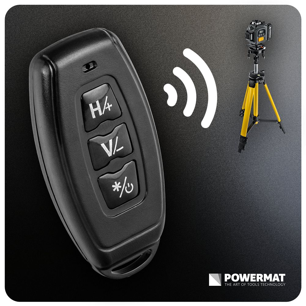 Diaľkové ovládanie vám umožňuje ovládať laser na diaľku bez toho, aby ste sa museli priblížiť k zariadeniu. Môžete zapínať a vypínať línie a meniť nastavenia, pričom zostanete na mieste inštalácie. Ušetríte čas, pretože nemusíte prerušovať prácu zakaždým, keď potrebujete upraviť nastavenia.