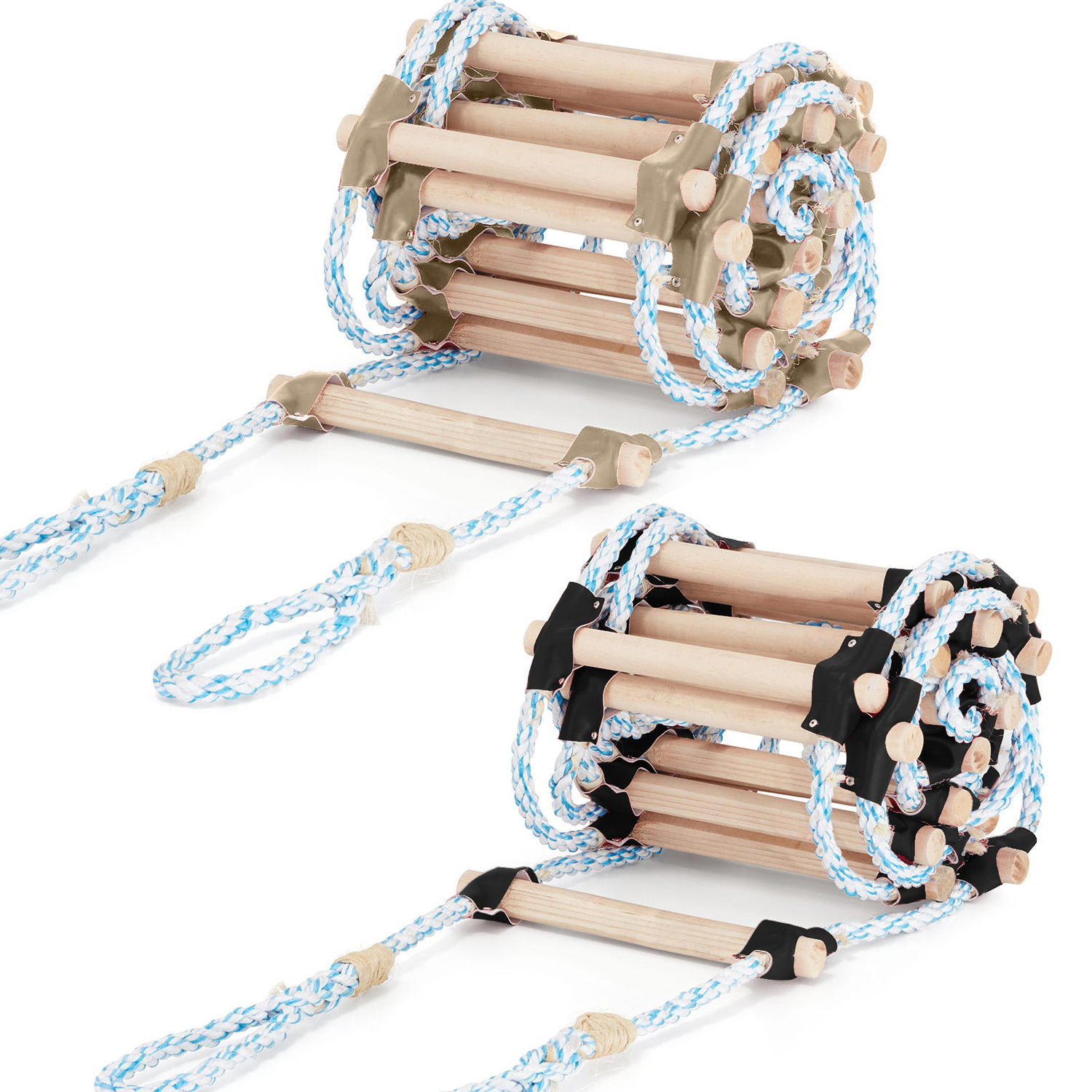 - Špeciálne výstuhy z jutového lana – upevnenia sú dodatočne zaistené chráničmi z jutového lana, ktoré zaisťujú hlavné laná rebríka v dĺžke približne 10 cm.