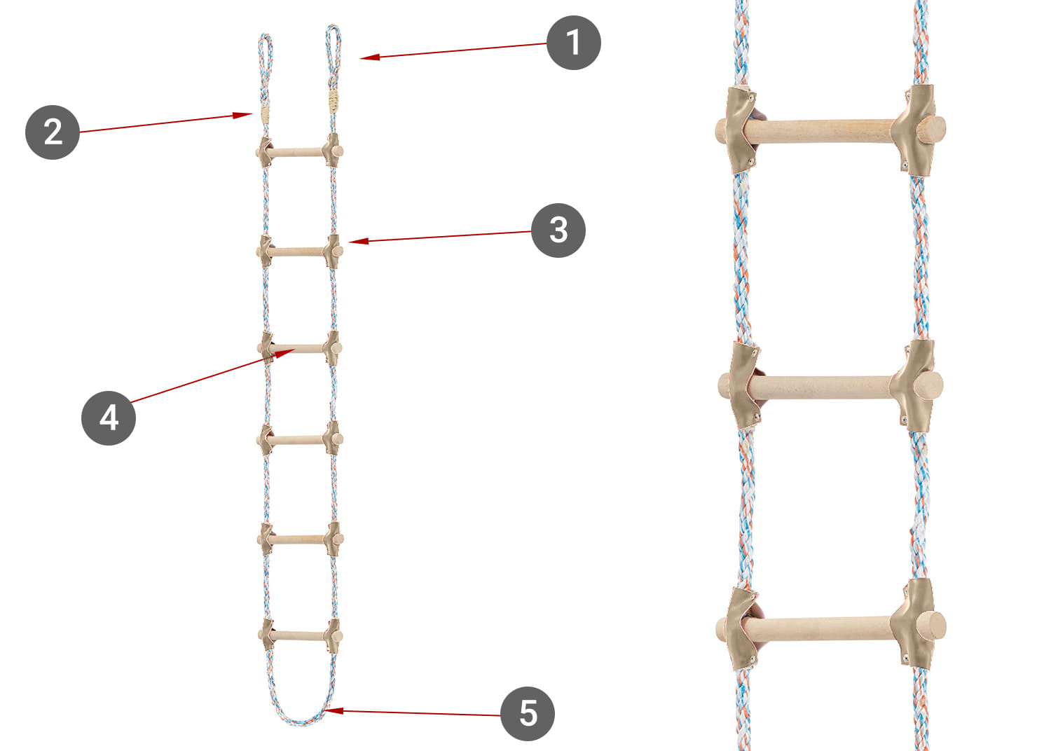Je vyrobený z 48 prepletených polypropylénových vlákien, ktoré sa vyznačujú veľmi vysokou pevnosťou. Stroj presne splieta vlákna a vytvára veľmi pevné lano s priemerom 22 mm a okrúhlym tvarom. Pri výrobe rebríka výrobca zámerne použil polypropylén, ktorý sa vyznačuje vysokou pevnosťou a úplnou odolnosťou voči poveternostným podmienkam.