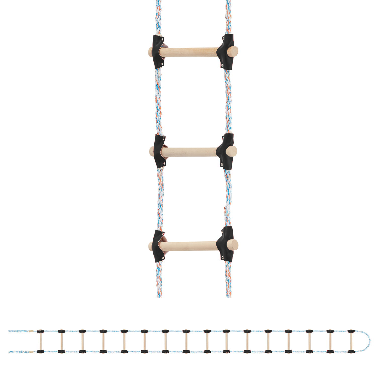 - Zloženie lana: 4 pramene (každý s 12 samostatnými pramienkami) v celkovom počte 48 pramienkov (jediný a najsilnejší lanový rebrík na trhu)