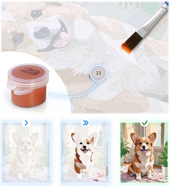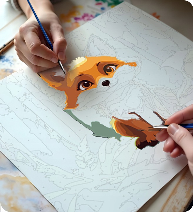 Maľujte jednoducho, krok za krokom. Vyplňte označené polia príslušnou farbou, začínajúc väčšími plochami a potom prejdite k detailom. Postupne uvidíte, ako vaše dielo nadobúda tvar a farby. Stačí sledovať čísla a zvyšok sa urobí sám! Maľovanie podľa čísel je vhodné aj pre páry, súrodencov alebo celé rodiny. Je to skrátka ideálny spôsob, ako tráviť čas spoločne.