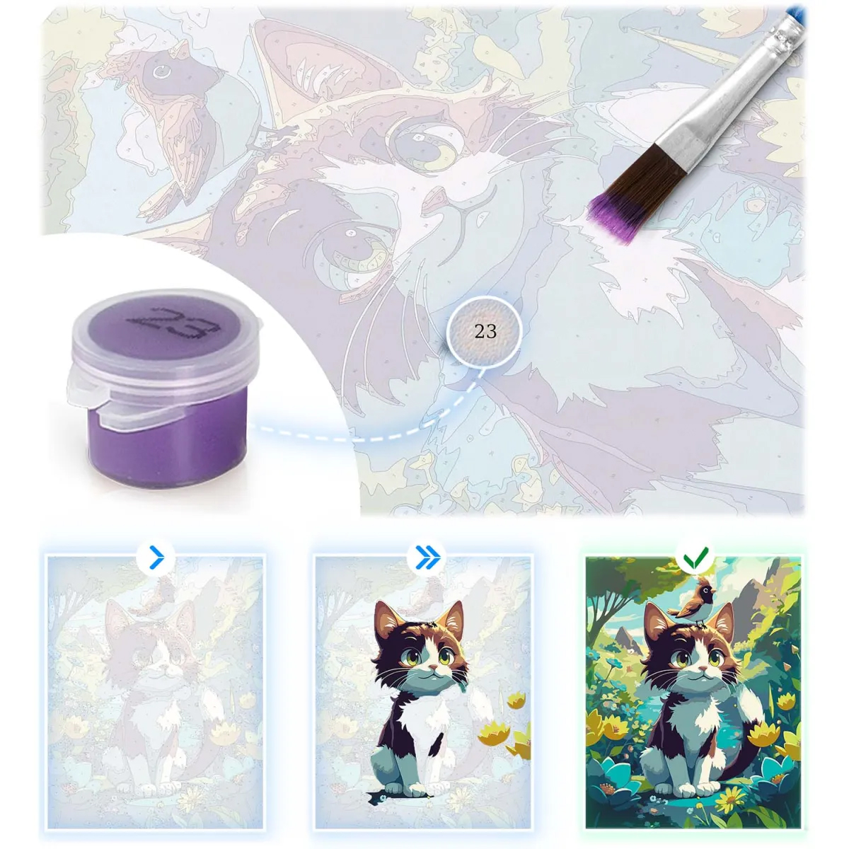Maľovanie podľa čísel, 40x50cm, mačiatko | Massido je sada, ktorá umožňuje relaxovať pri vypĺňaní políčok farbami a vytvoriť tak vlastné umelecké dielo. Veselý, farebný vzor je skvelou voľbou pre veľkých aj malých umelcov, ktorí chcú objavovať radosť z maľovania. Ideálny na strávenie kreatívneho času s rodinou a vytvorenie jedinečného diela plného farieb!