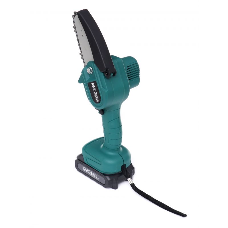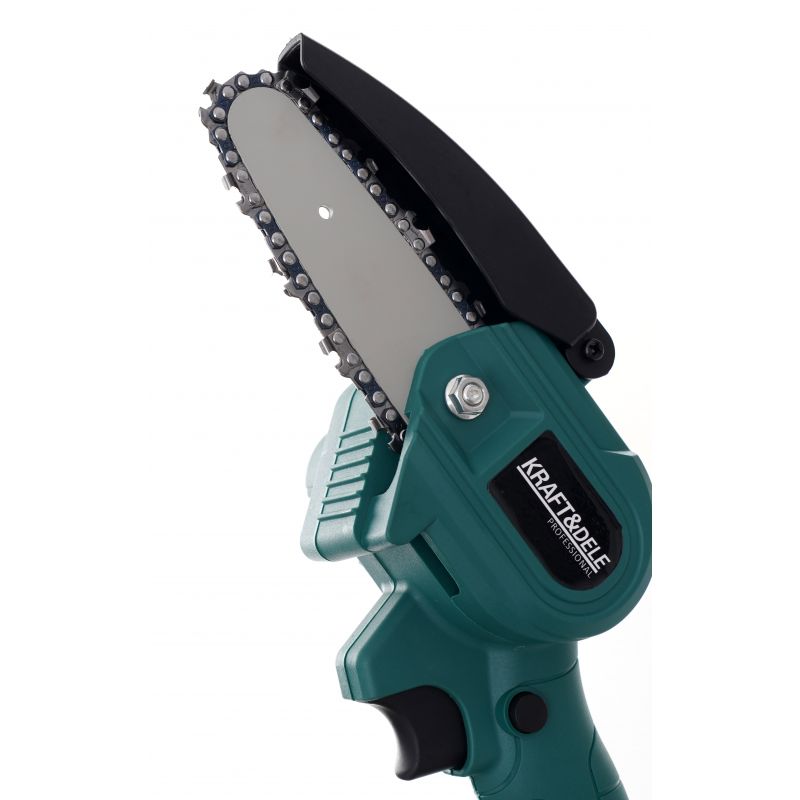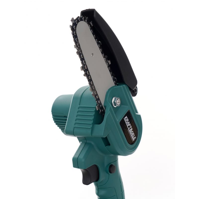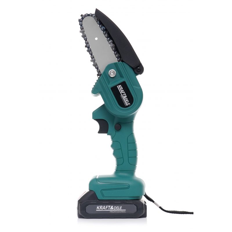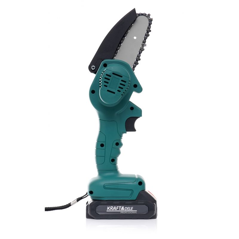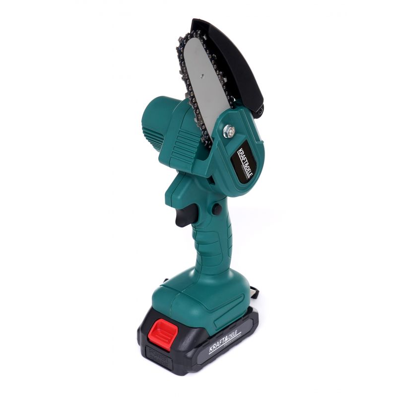 Mini akumulátorová reťazová pílka, 1200W | KD10622 (Výstavný kus) je ideálna na rezanie stromov, konárov, kríkov a ostatné bežné záhradné práce. Konštrukcia pílky bola navrhnutá pre jednoduchú obsluhu. Vďaka nízkej hmotnosti a ergonomickému tvaru upravíte všetko vo vašej záhrade rýchlo a jednoducho, ale ušetríte aj energiu a čas. je vybavená kvalitnou reťazou, ktorá umožňuje hladké rezanie. Reťaz má ochranu.