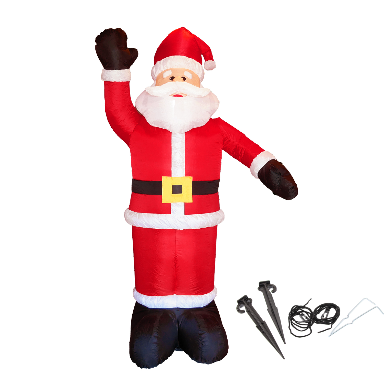 Tento nafukovací Santa s impozantnou výškou 270 cm a vstavaným LED osvetlením je skrátka perfektným spôsobom, ako vytvoriť jedinečnú, radostnú vianočnú atmosféru. Žiari krásnym, jasným svetlom, ktoré po zotmení upúta pozornosť a vytvorí rozprávkovú atmosféru.