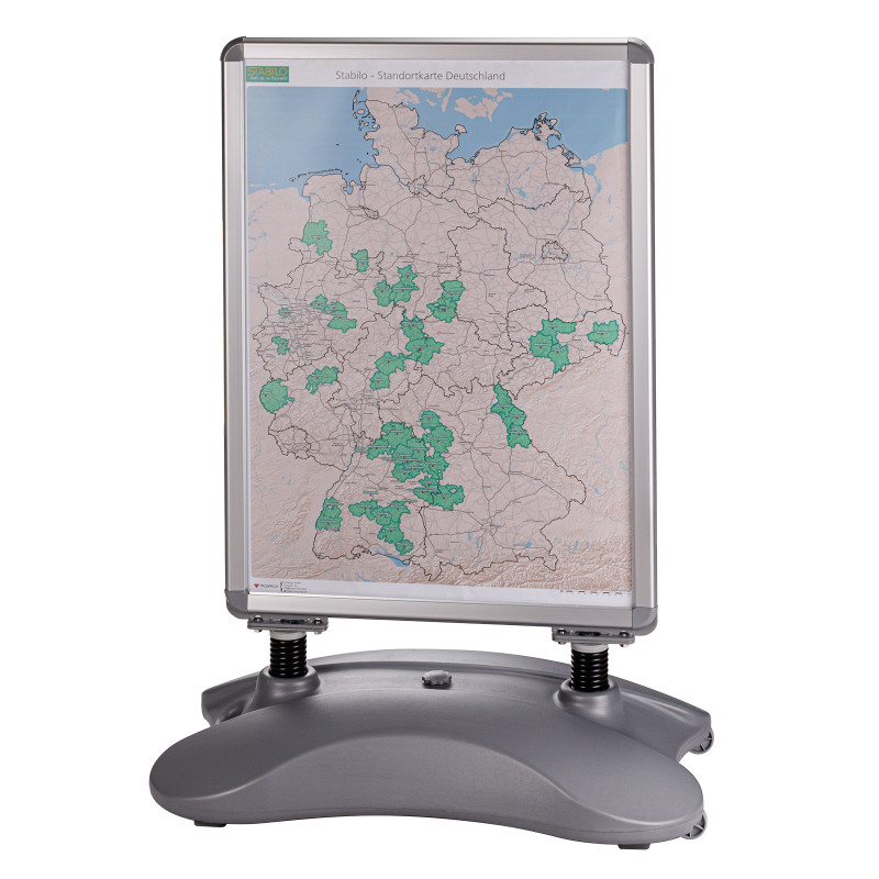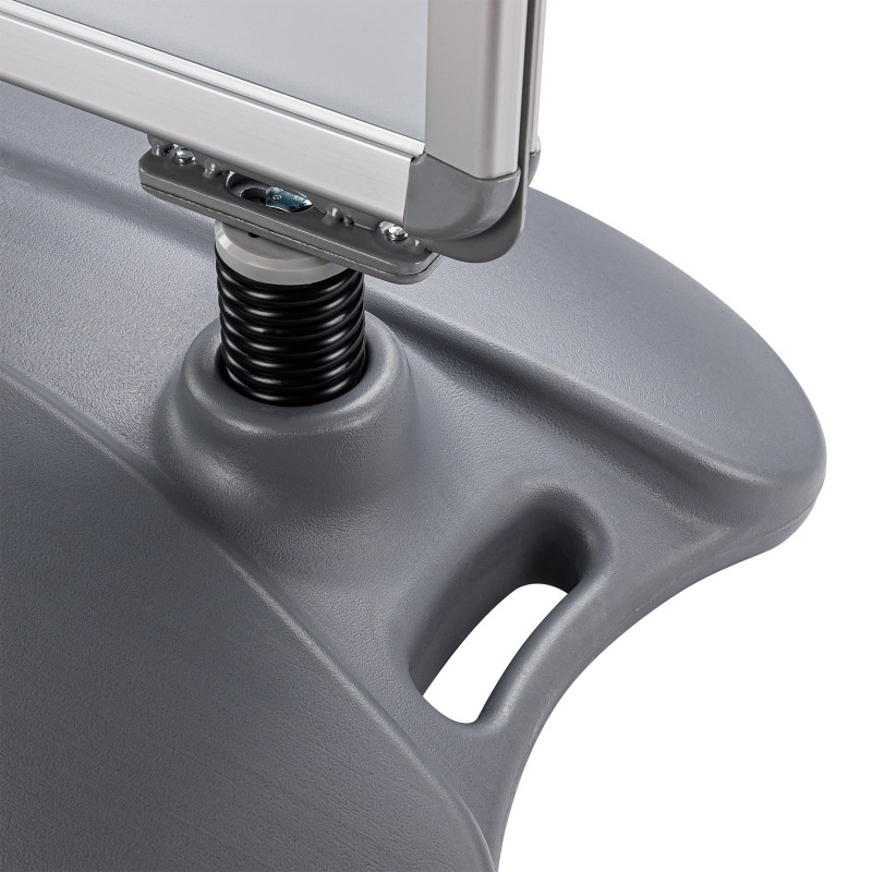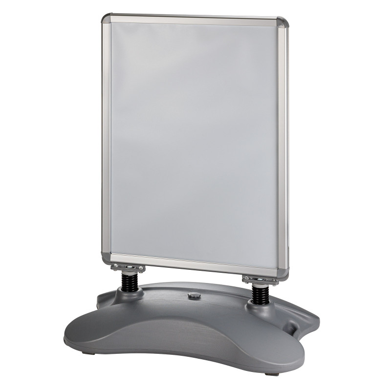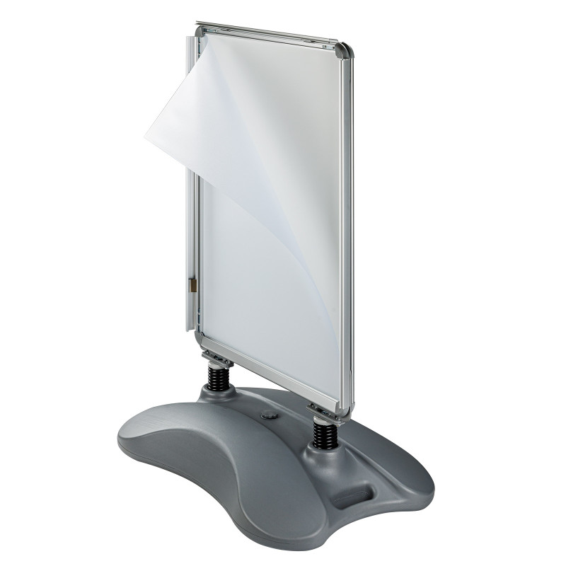 Obojstranný stojan na plagáty Oskar, A1 | DEMA je určený na prehľadnú a profesionálnu prezentáciu reklamných alebo informačných materiálov. Stabilná a mobilná základňa naplnená vodou alebo pieskom tvorí pevný základ. Reklamu je možné umiestniť na oboch stranách. Stojan ma vysokokvalitný hliníkový rám. Vďaka zaobleným rohom na držiaku a základni je stojan navyše aj bezpečný.