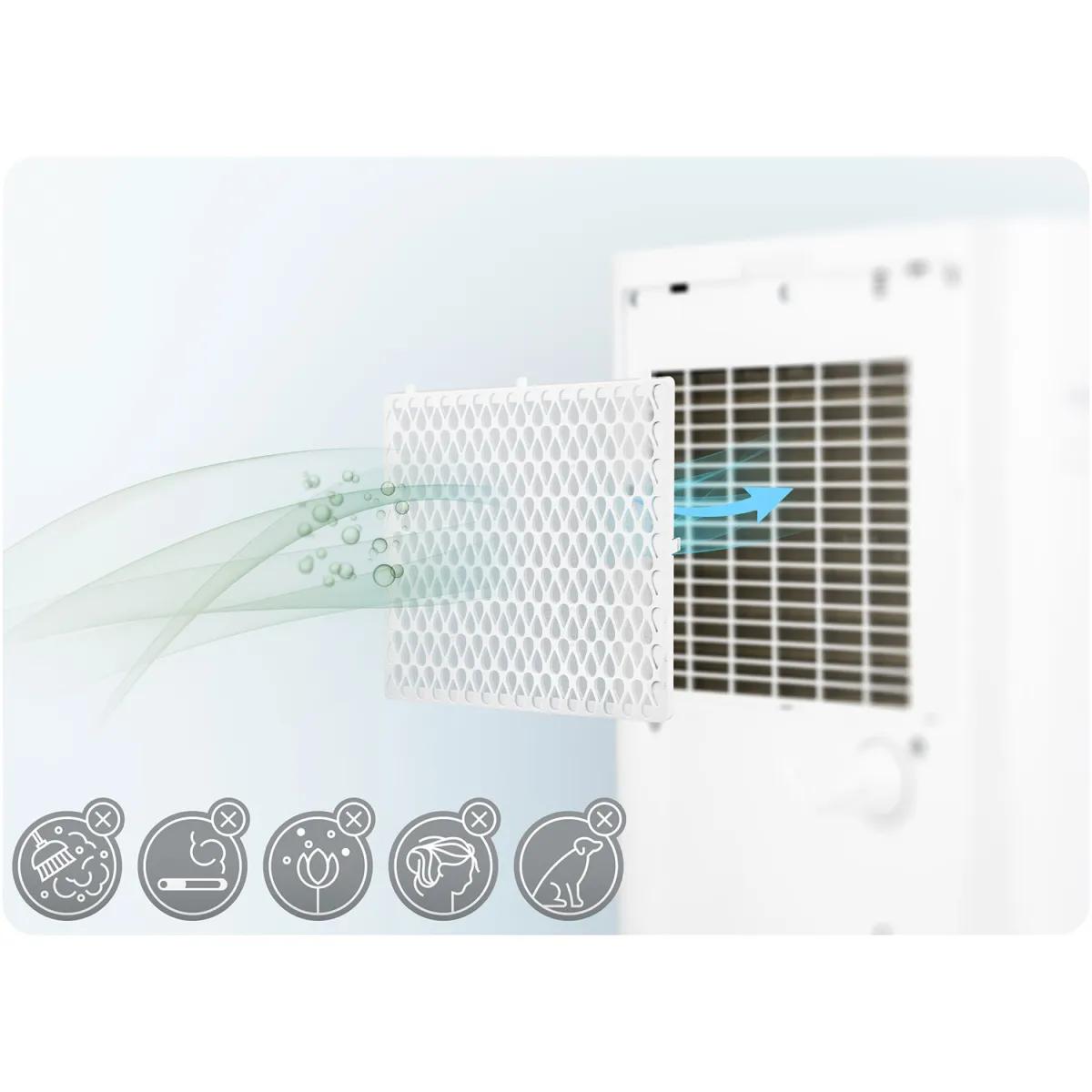 S prietokom vzduchu približne 140 m³/h a nádržkou na kondenzát o objeme 2 l umožňuje dlhšiu obsluhu bez potreby častého vypúšťania, pričom hlučnosť sa pohybuje v rozmedzí cca 35,5-43 dB – vhodné aj do obytných priestorov. Funkcia trvalého odvodu vody pomocou pripojiteľnej hadičky umožňuje prácu bez prestávky, čo je výhodné napríklad pri sušení mokrého prádla alebo vlhkých miestností.