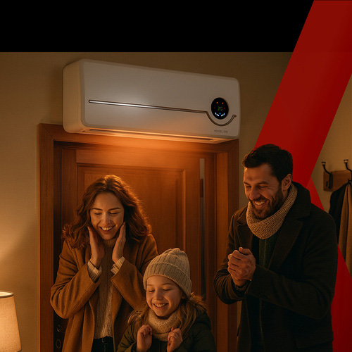 PTC keramické vykurovacie teleso zaručuje rýchly ohrev a vysokú energetickú účinnosť, pričom funkcia SWING rovnomerne rozvádza teplý vzduch po celej miestnosti. Zariadenie disponuje inteligentnými funkciami ako detekcia otvoreného okna (automatické vypnutie pri poklese teploty), režim ECO na úsporu energie, 24-hodinový a týždenný časovač, detský zámok, ochrana proti prehriatiu a možnosť ovládania cez Wi-Fi aplikáciu alebo priložený diaľkový ovládač.