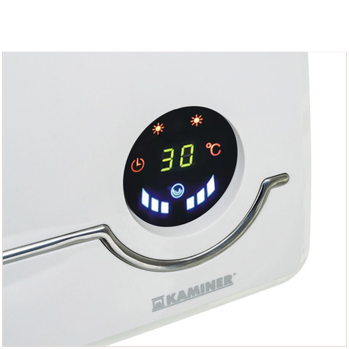 Na prehľadnom LED displeji sa zobrazujú všetky nastavenia, čo zvyšuje komfort používania. Vďaka kompaktným rozmerom (cca 50 × 18 × 13 cm) a modernému dizajnu sa hodí do domácností, kancelárií, obchodov aj vstupných priestorov. Krytie IP22 zaručuje bezpečnú prevádzku v bežných interiérových podmienkach. Airo Kaminer je spoľahlivý a elegantný spôsob, ako udržať teplo a pohodlie počas chladných dní.