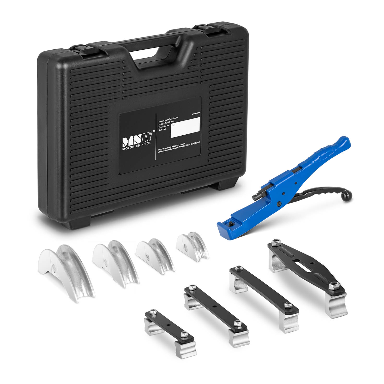 Praktické príslušenstvo, ktoré je súčasťou súpravy, vám umožní prispôsobiť ohýbačku spracovávanému materiálu. Spolu s modelom MSW-TBHY-01 poskytujeme 4 vymeniteľné hlavy s veľkosťou 16 mm, 20 mm, 26 mm a 32 mm. Všetky prvky môžete vložiť do praktického plastového puzdra.