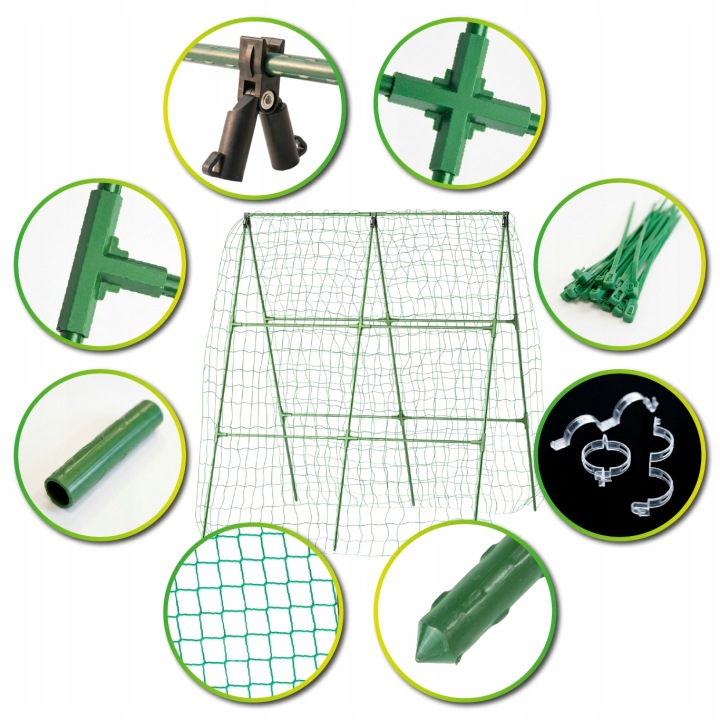 Opora pre rastliny so sieťkou, 1,8×2,7m | Garden Line podporuje rast popínavých rastlín a rastlín s mäkkými stonkami (paradajky, uhorky, hrozno). Vďaka svojej konštrukcii je veľmi odolná a to aj voči poveternostným vplyvom. Účelom použitia konštrukcie je predovšetkým podpora rastu rastlín a vďaka sieťke na popínavé rastliny, ktorá je súčasťou sady, navyše prispieva k ich správnemu vývoju.