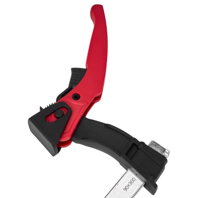 Páková svorka, 90kg, 300x60mm | KD10710 je rýchly a pevný upínací nástroj pre bezpečné uchytenie materiálov pri stolárskych a dielenských prácach. Vďaka pákovému mechanizmu svorka zabezpečí stabilné držanie obrobkov bez nutnosti zložitého nastavovania, čo zvyšuje efektivitu a presnosť pri lepení, montovaní alebo opracovaní dielov.Svorka sa hodí na upínanie dreva, plastov aj iných materiálov a vďaka kompaktnej konštrukcii ponúka praktické riešenie pre každodenné používanie v dielni či garáži.