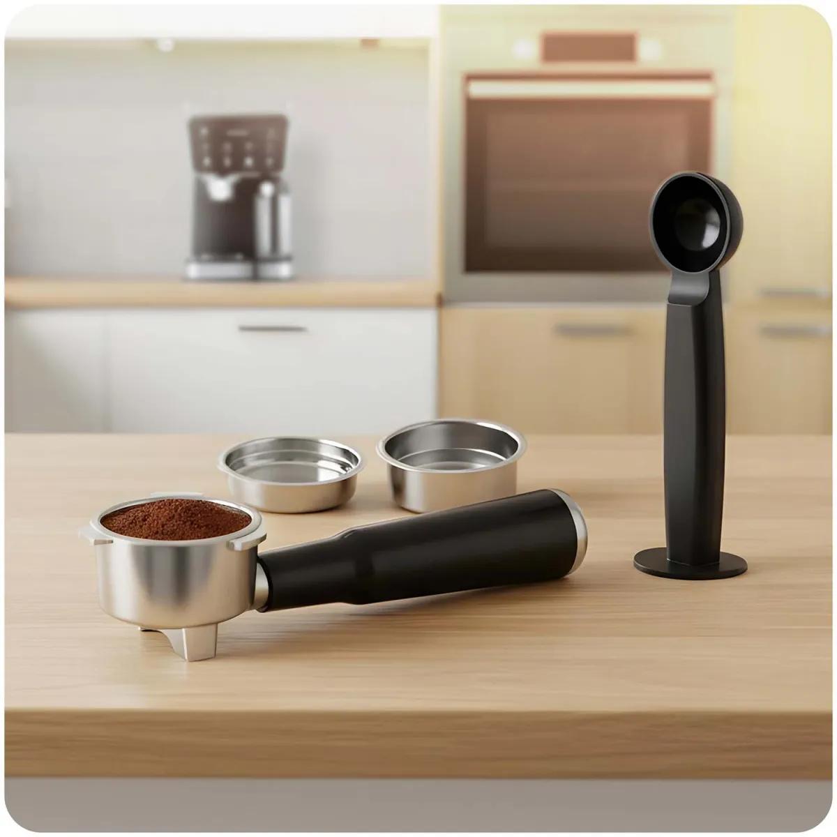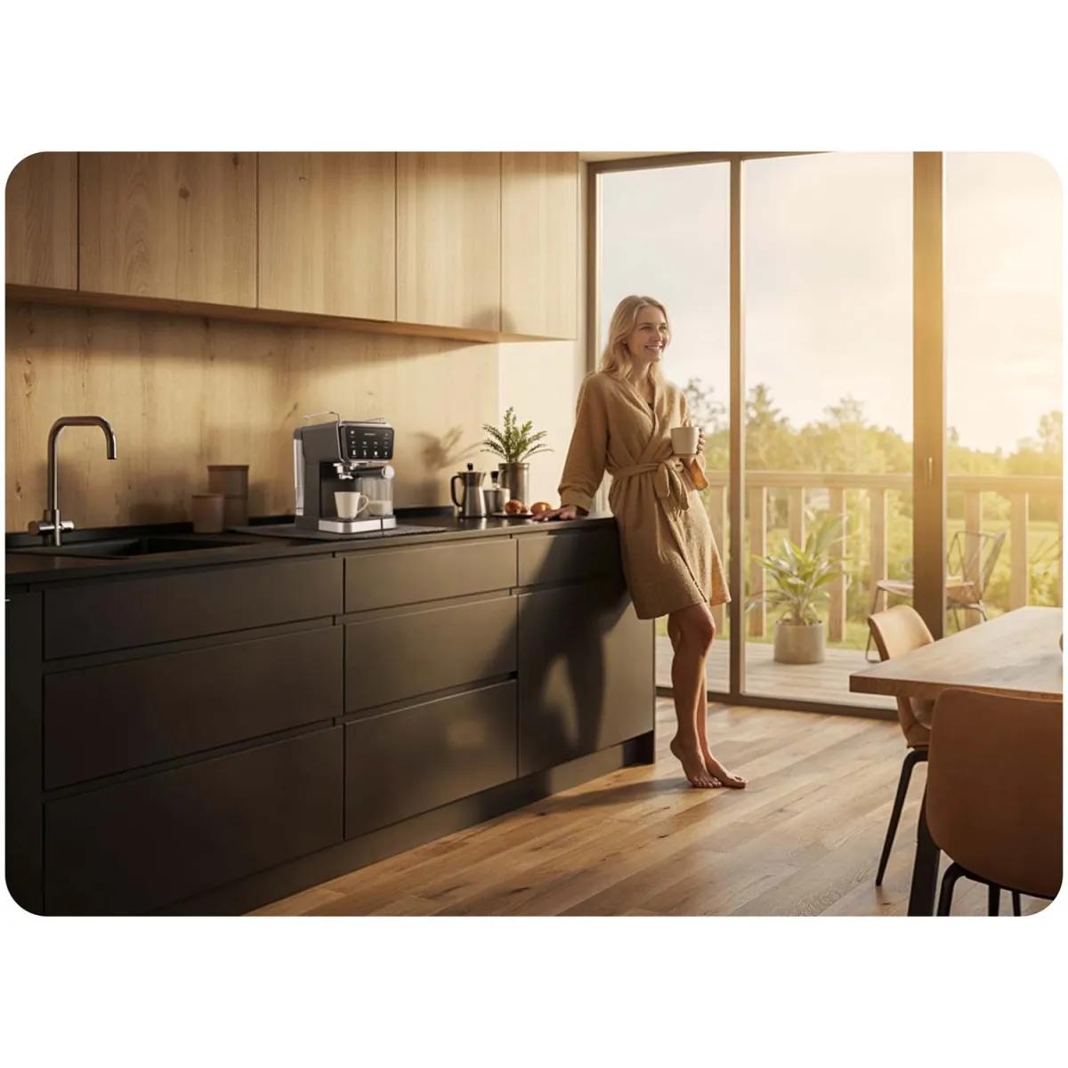 Súčasťou prístroja je aj integrovaný naparovač mlieka, ktorý umožňuje jednoducho pripraviť krémové cappuccino, latte či iné mliečne špeciality. Kávovar disponuje odnímateľnou nádobou na vodu s objemom približne 1,5 litra, čo umožňuje pripraviť viac šálok bez potreby neustáleho dopĺňania.