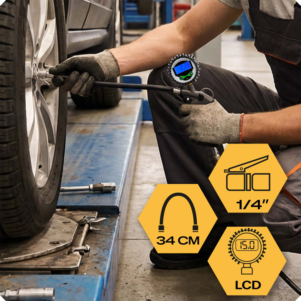 Pneumatická pištoľ s manometrom HM-260 | Humberg je praktický nástroj vhodný na jednoduché a presné dofukovanie pneumatík v rôznych podmienkach. Digitálny LCD displej zobrazuje aktuálny tlak v reálnom čase, čo umožňuje rýchlu a presnú kontrolu bez nutnosti odhadovania. Možnosť prepínania medzi rôznymi jednotkami (bar, psi, kPa) zjednodušuje prácu podľa preferencií a typu použitia.
