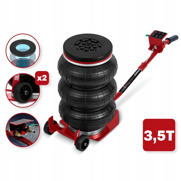 Pneumatický zdvihák HM-382, 3,5T | Humberg je praktické a výkonné riešenie pre zdvíhanie vozidiel pri údržbe a servisných prácach v dielni či garáži. Vysoká nosnosť do 3,5 t zabezpečuje dostatočnú rezervu pre väčšinu bežných automobilov, zatiaľ čo pneumatické ovládanie umožňuje hladký a kontrolovaný zdvih s minimálnou námahou.