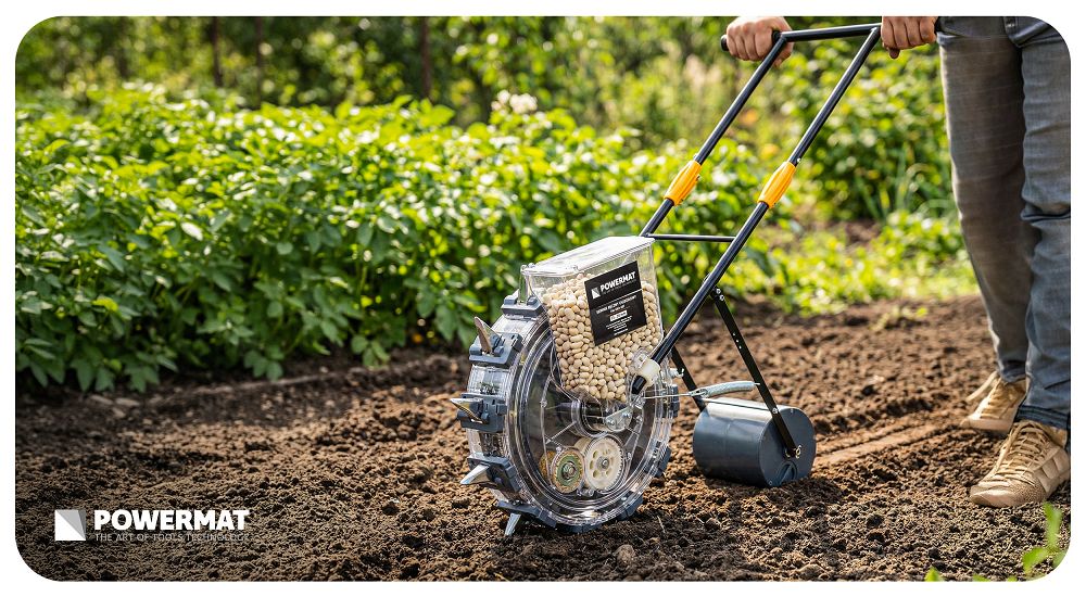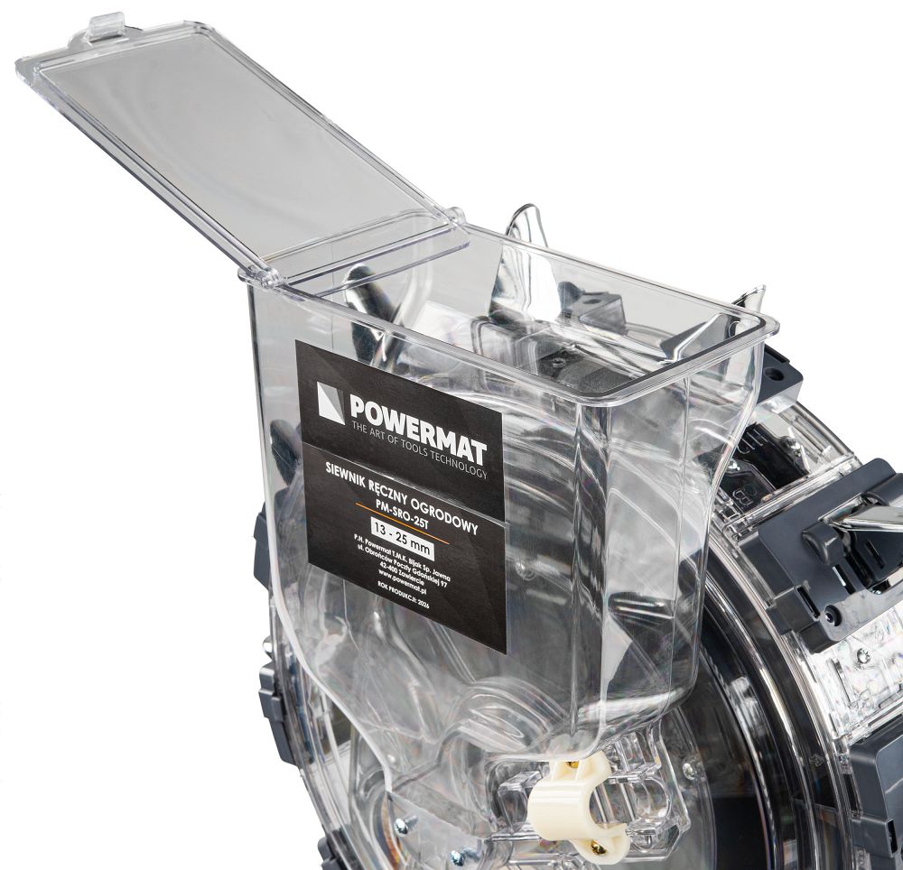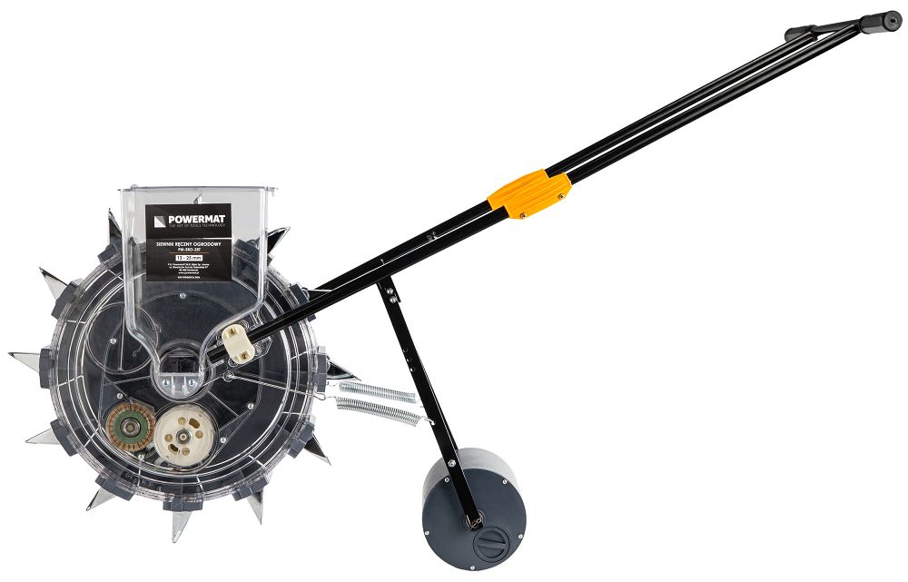 Ručná bodová sejačka, 3,7kg | PM-SRO-25T umožňuje presný a rovnomerný výsev semien bez nutnosti ohýbania, čím zjednodušuje prácu v záhrade. Zariadenie využíva kefu pre väčšie semená a systém lyžičiek pre menšie, čo vám umožňuje prispôsobiť spôsob výsevu typu materiálu. Vďaka tomu sa semená odoberajú a ukladajú kontrolovaným a rovnomerným spôsobom. Obmedzujete riziko poškodenia a chýb pri výseve. Získate väčšiu univerzálnosť bez nutnosti výmeny zariadenia.