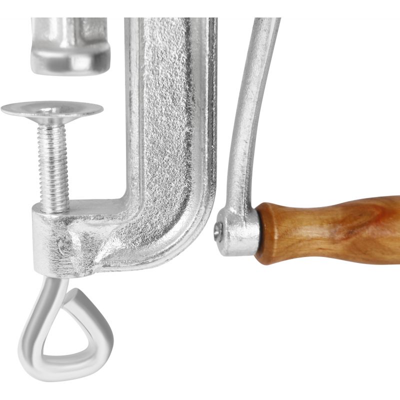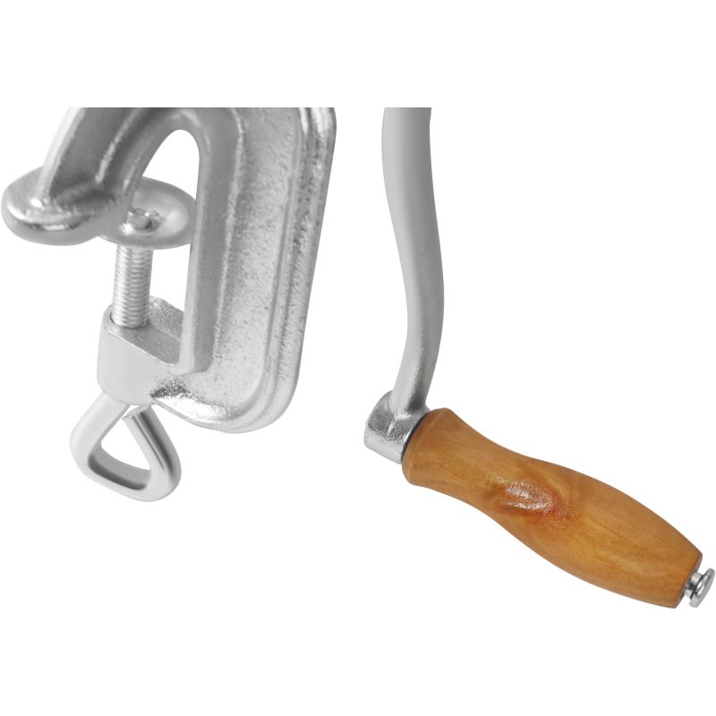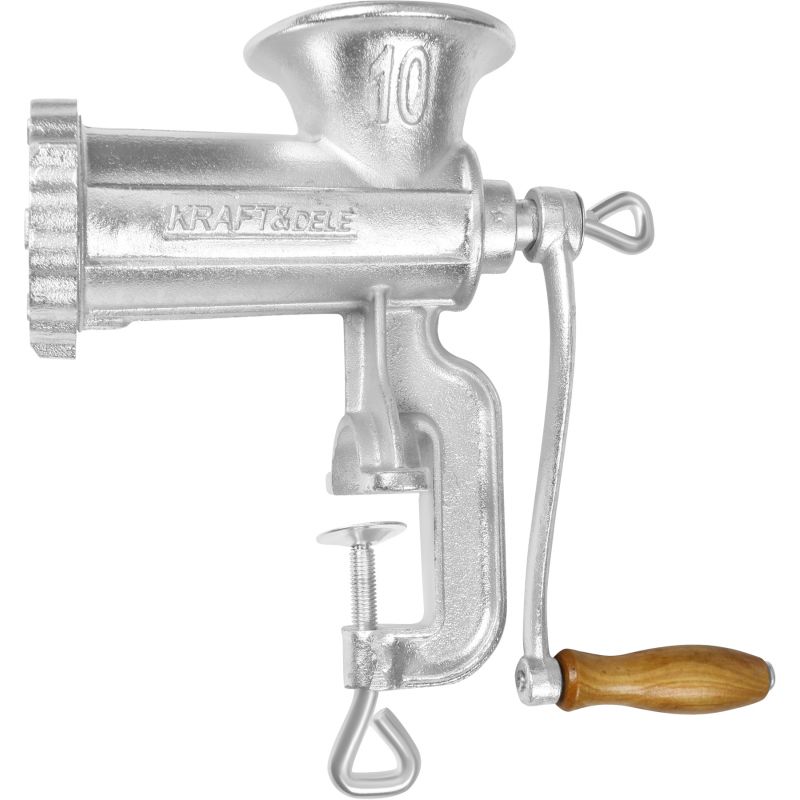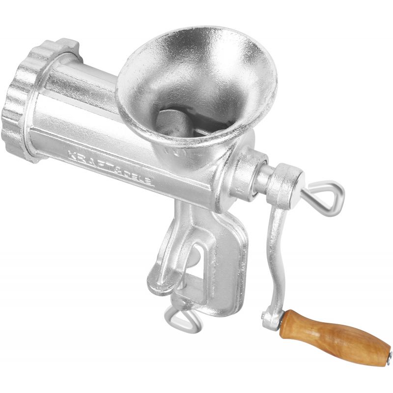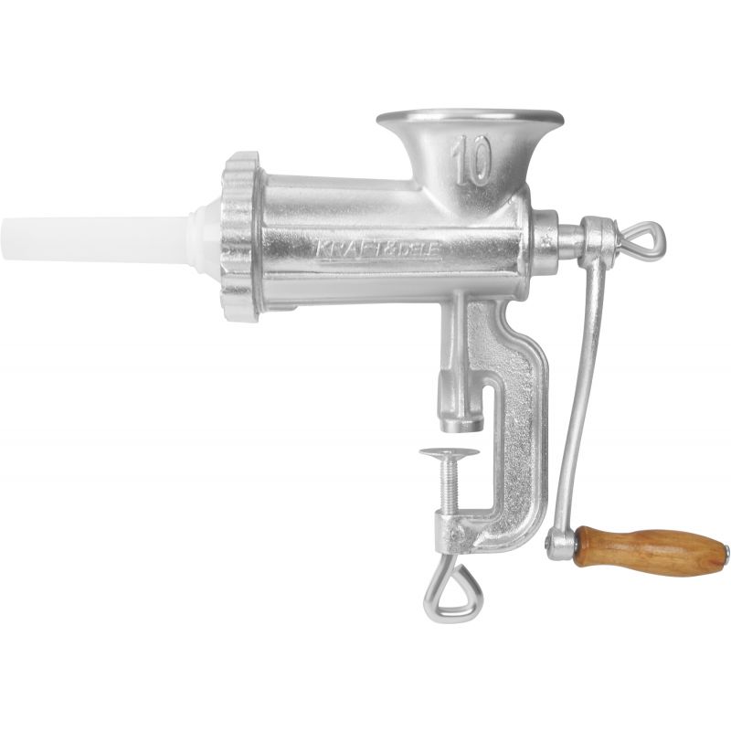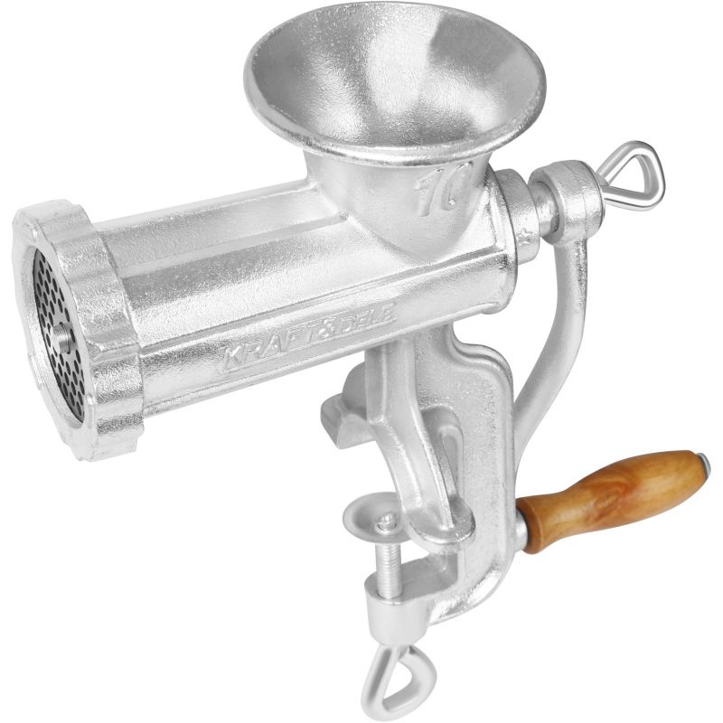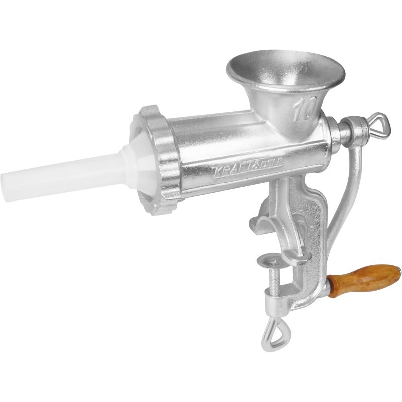 Ručný mlynček na mäso, veľkosť 10 | KD4192 je spoľahlivý a praktický nástroj určený na prípravu čerstvého mäsa, plniek a domácich údenín. Vďaka klasickej konštrukcii a nezávislosti od elektrického napájania sa osvedčí v každej kuchyni. Telo vyrobené zo zliatiny pozinkovaného liatinového kovu zaisťuje trvácnosť a odolnosť voči poškodeniu, a pohodlná kľuka s drevenou rukoväťou zaručuje komfort pri používaní.